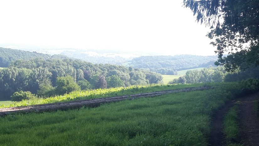 Die heutige Etappe war sehr unterhaltsam, denn nur für kurze Zeit war ich allein. Los ging es schon, das ich beim Auschecken im Hotel einen Wanderer getroffen habe der sich allerdings gerade auf den Weg begab. Eine dreiviertel Stunde später habe ich ihn wieder getroffen. Wie er erzählte hat er schon gewußt das jemand kommt. Denn auf dem Weg lag ein Anwesen, das von einem Hund bewacht wurde der sein Revier wütend verteidigte. Jeder von uns beeilte sich mit mulmigen Gefühl daran vorbei zu kommen. Die nächsten drei Stunden sind wir zusammen gewandert. Henning hat drei Wochen Zeit und geht soweit ihn die Füße tragen immer nach Norden.