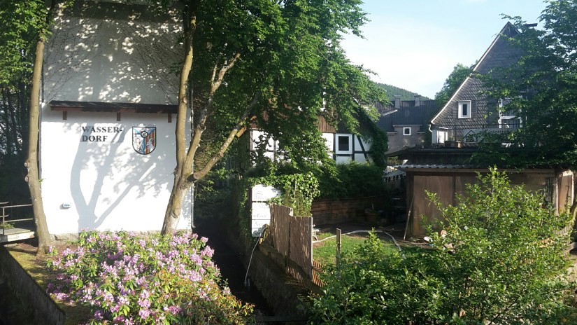In der Ortsmitte laufen drei Bäche zusammen. An jedem steht eine Mühle. Sehr kleine Gebäude, denn viel Platz ist nicht.