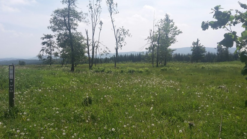 Wie ihr unschwer erkennen könnt, oben macht er seinrm Namen alle Ehre und er ist kahl bzw. eine Heidelandschaft prägt das Bild. Ein weiter Ausblick belohnt die Mühen. In der Ferne kündigen sich die Wolken für die angesagten Gewitter an und mein Weg ist erst zur Hälfte geschafft, also bleibe ich nicht allzu lang. Bergab auf der anderen Seite war ich dann allein unterwegs, keine Straße oder Parkplatz in der Nähe und schon begegnet einem fast kein Mensch.