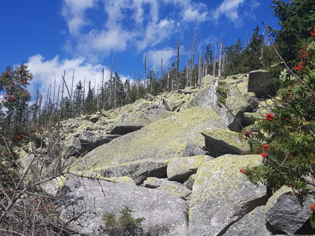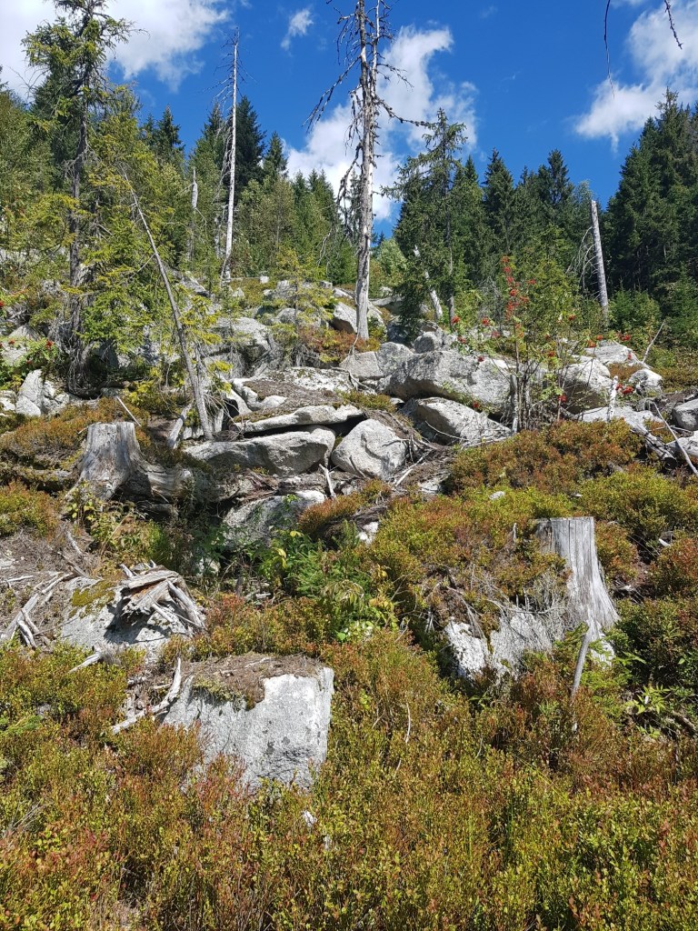Es ging stetig bergauf und dann begann ein abwechslungsreicher Abschnit. Über große Steinblöcke führte der Weg, eine tolle Abwechslung.