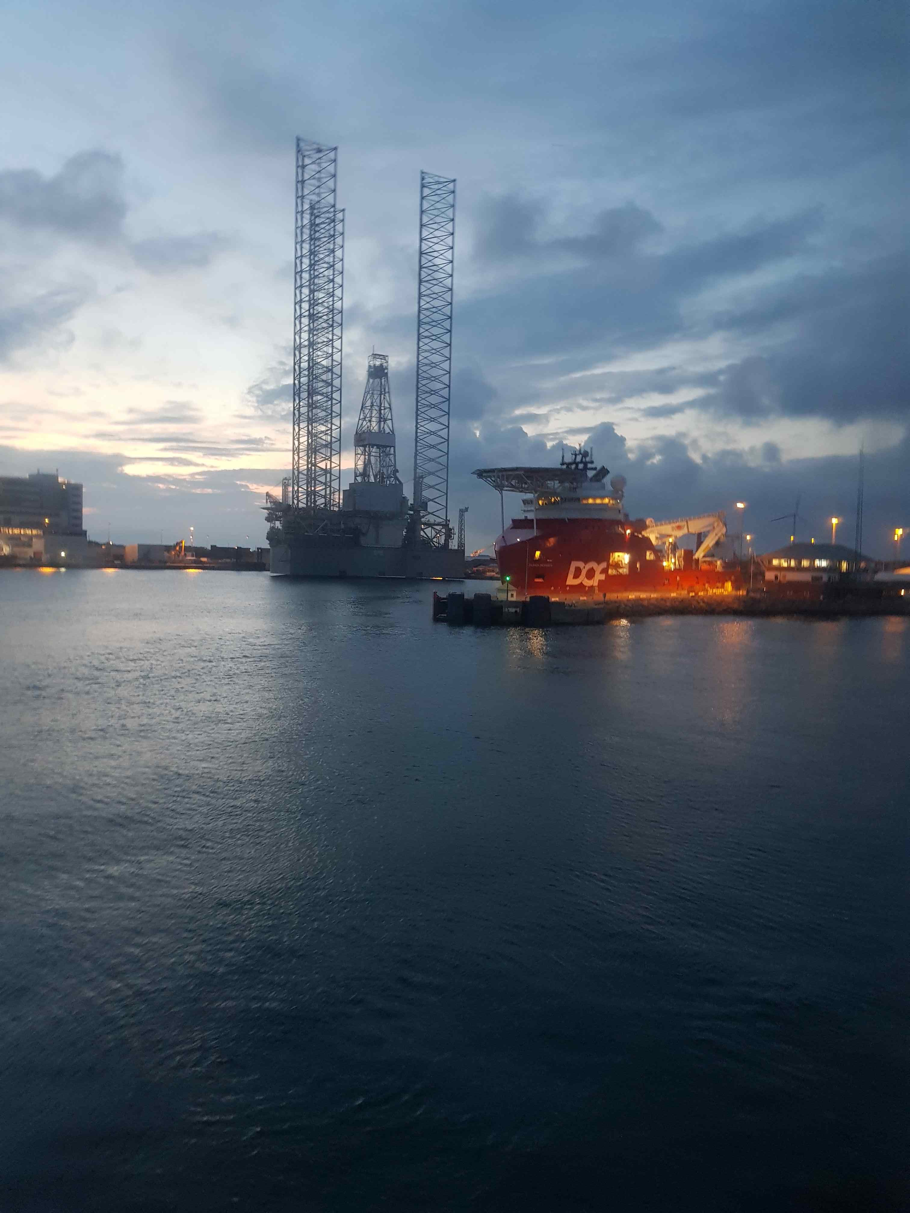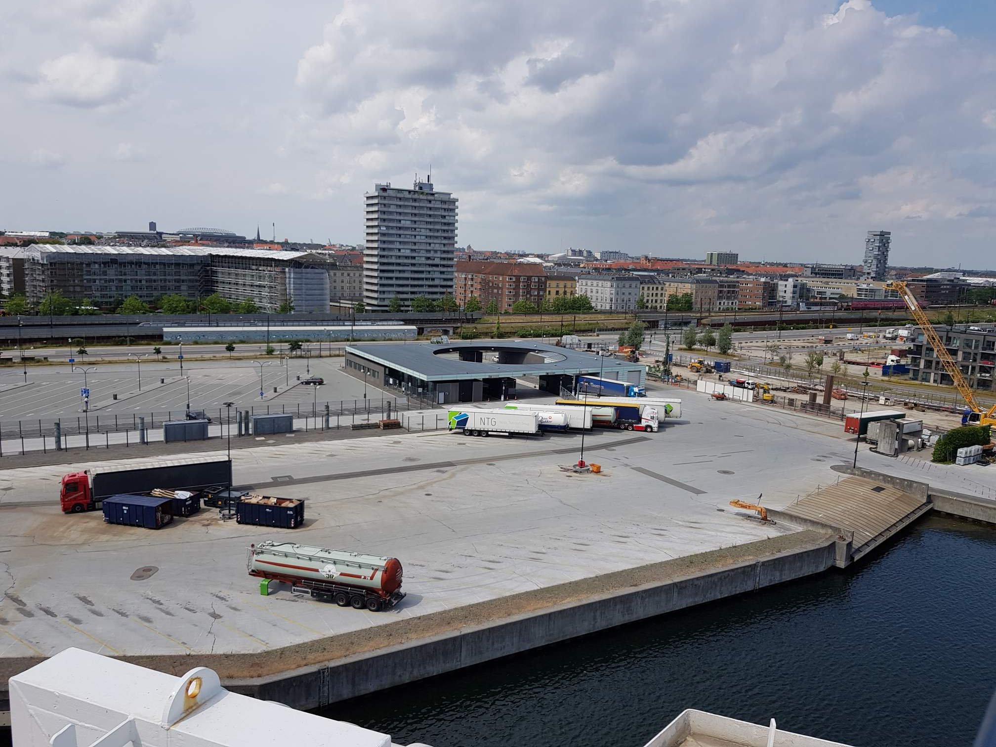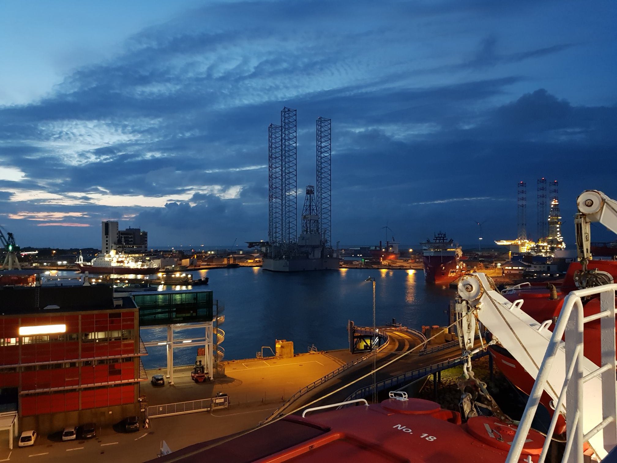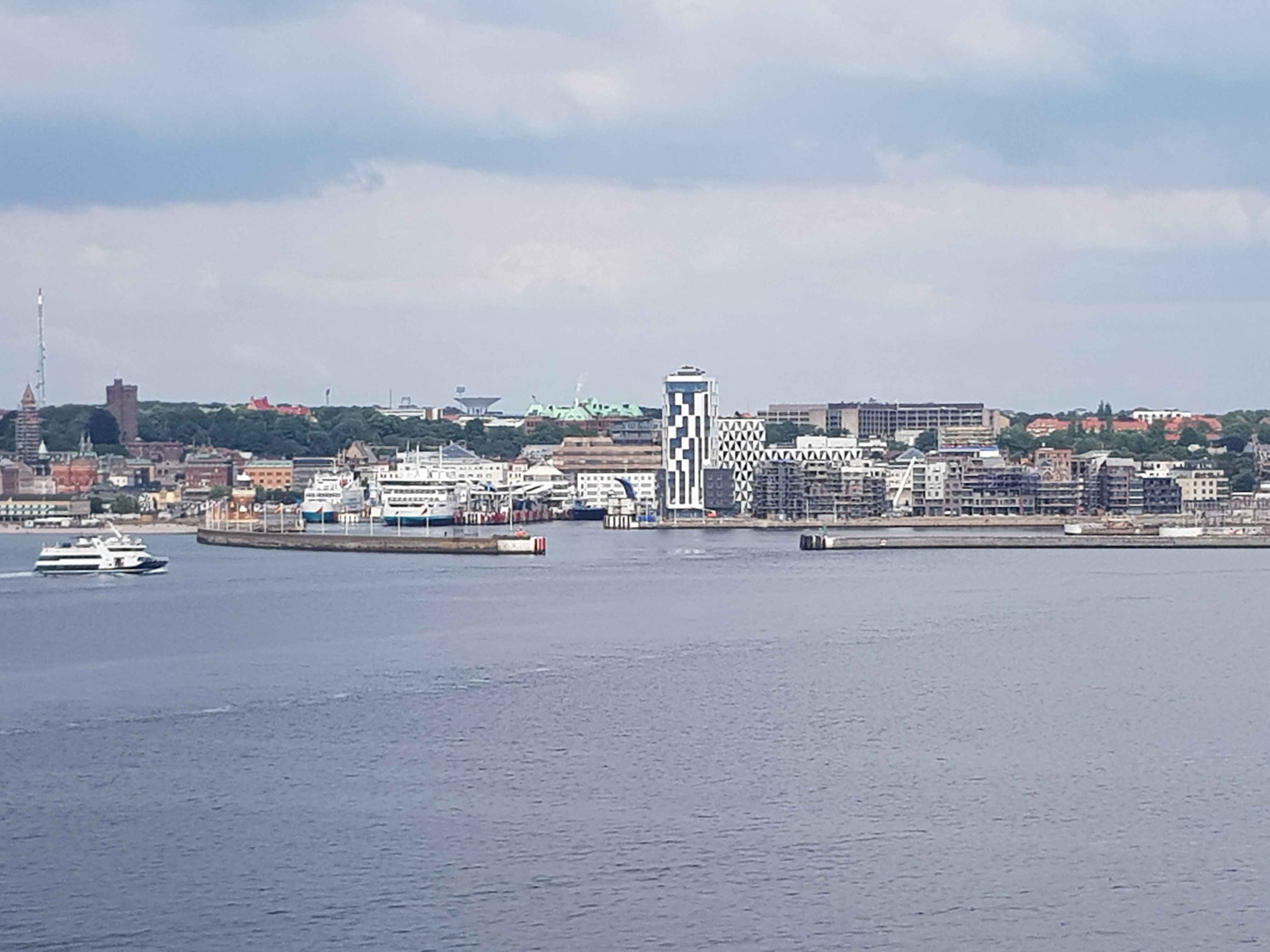 Abends um 23.00 Uhr kommen wir am nördlichsten Punkt von Dänemarks Festland an. Das „einparken“ im Hafen mit so einem riesigen Schiff ist sehr beeindruckend und muss zentimetergenau passen. Viel Platz ist nicht. Dort fahren dann viele Autos, Wohnmobile und vor allem Lastwagen an Board sogar ein voll bepackter Radler ist dabei. Man kann es kaum glauben was alles im Bauch des Schiffes Platz hat.
