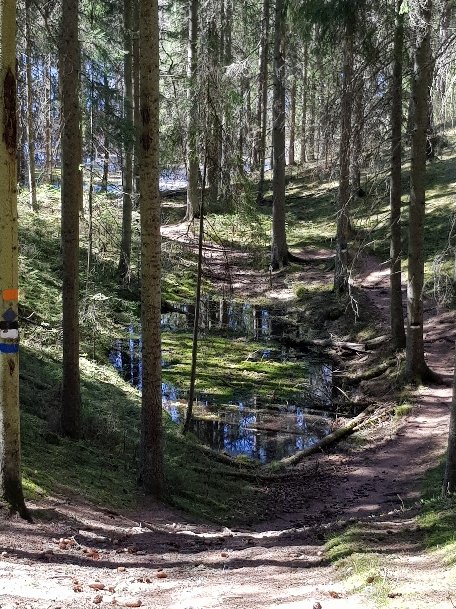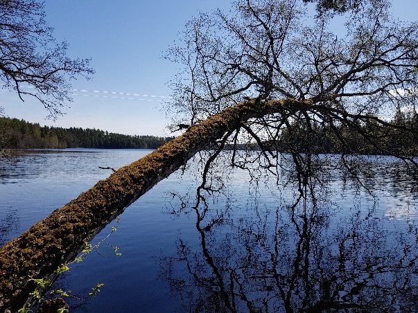 Heute mal kein Bild vom See, obwohl der Campingplatz an einem solchen liegt und ich ihn auch zwischen den Bäumen sehen kann. Dafür ein Bild vom Zeltplatz, der liegt in einem Waldgebiet.