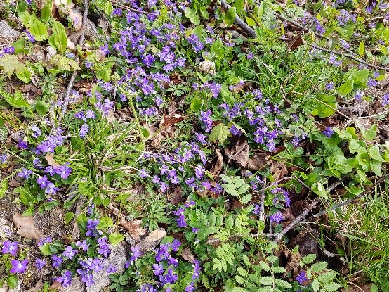 Blühender Sauerklee, Duftveilchen in riesiger Anzahl und die winzigen Pilze. Für die musste ich mich auf den Boden knien, da ist das Aufstehen mit dem Rucksack durchaus anstrengend.