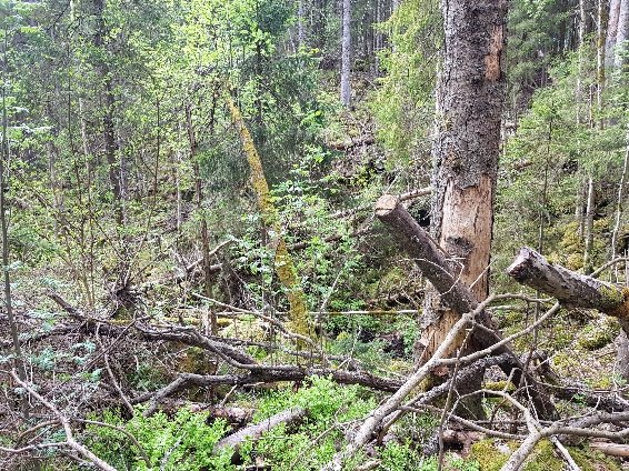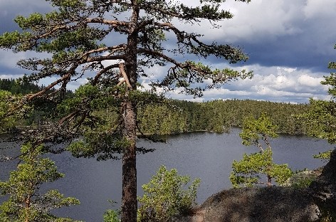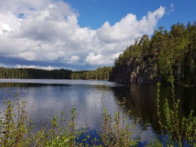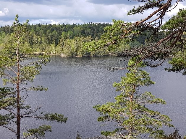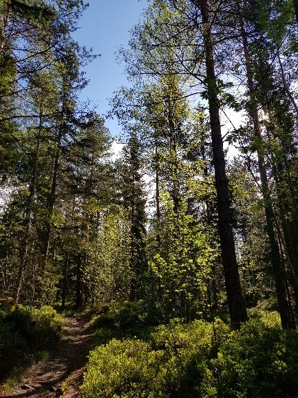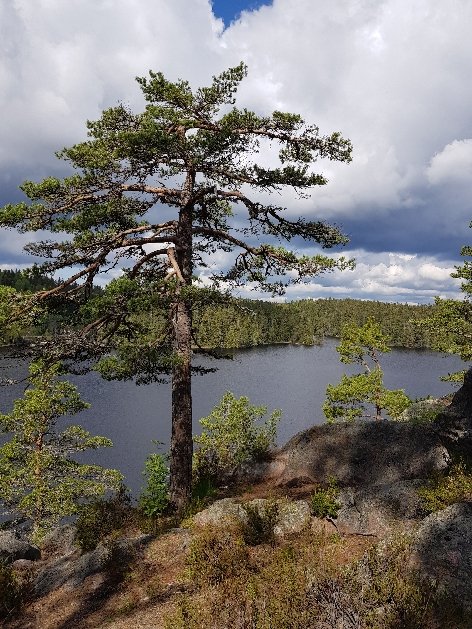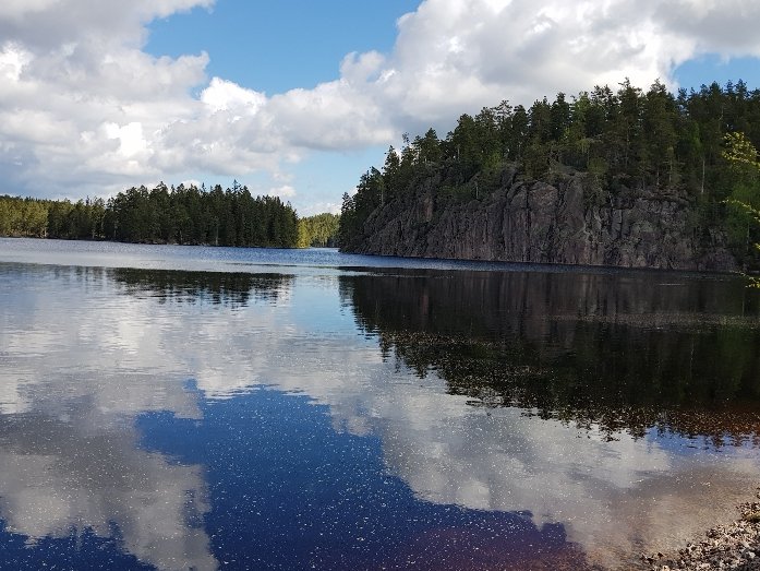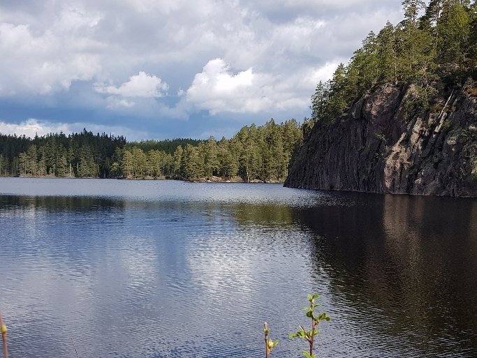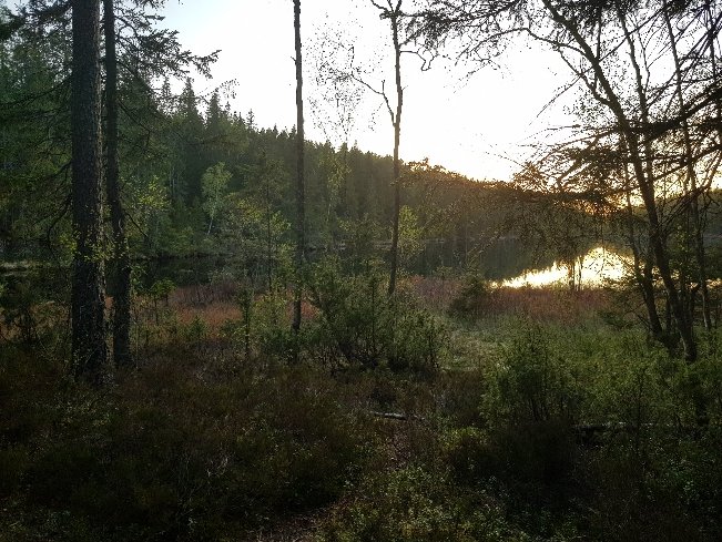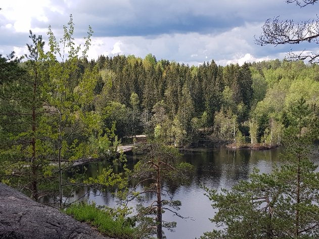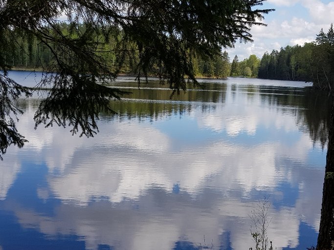 Gestern war überhaupt kein Netz vorhanden an meinem Lagerplatz. Außerdem nicht wirklich viel zu berichten, so ergibt sich eine Zusammenfassung. Vom schönsten Badesee Kilsbergens, laut Infotafel, nach Leken. Der Weg ist so gut markiert das ich überhaupt nicht auf meine hinterlegte Karte auf meiner Navigationsapp nachschaue und so bis kurz vor Leken nicht bemerke, das sich die Route leicht verändert hat. Erst im Tal bei der Autobahn bin ich überrascht das ich in eine völlig andere Richtung gewiesen werde. Bei der darauffolgenden Recherche erfahre ich, dass die Wegführung von 2 Etappen verändert wurde. Dadurch kam ich überraschenderweise an der Rasthaltestelle mit Kiosk, der zusätzlich mit einem kleinen Restaurant betrieben wird, vorbei. So eine Gelegenheit lasse ich mir nicht entgehen. Es war Mittagszeit und ich habe mir ein hervorragendes Pilzrisotto mit frittiertem Grünkohl gegönnt. Freie Auswahl an der üppigen Salattheke inbegriffen. In Schweden gehört Wasser, Kaffee und Plätzchen zum Gesamtpreis dazu. Ziemlich voll und schwerfällig machte ich mich auf den Weg. Bei nächster Gelegenheit brauchte ich ein Verdauungsnickerchen. Danach ging es ordentlich den neuen Weg bergauf. Hier sind noch nicht viele Leute gegangen. War alles noch ganz moosig und es war super weich, aber halt auch super anstrengend zu gehen.