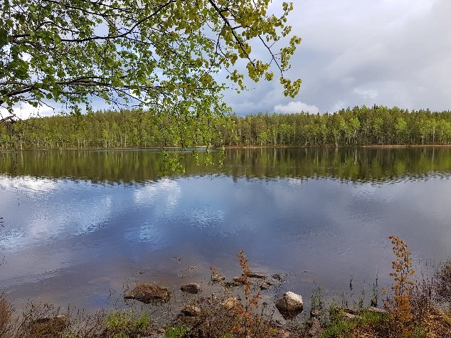 2 regnerische kühle Tage mit feuchten Schuhen und Socken. Der Rest, also Jacke, Hose und Zelt hält dicht und das ist das Wichtigste. Beim Aufstehen in Ramshyttan scheint sogar noch die Sonne und ich kann den Daunenschlafsack noch vom Wind durchpusten lassen was den Daunen nach der Nacht mit der Kondensfeuchte richtig gut tut bevor er in den Kompressionsack auf etwa die Größe einer 1l Flasche reduziert wird. Also Glück gehabt, bei Sonne und 7°C gemütlich gefrühstückt und zusammen gepackt. Auf dem Weg ist mir eine Gruppe mit Schulkindern begegnet. Der Lärm war ganz ungewohnt so mitten im Wald. Trotz Regen und Matsch waren sie mit ihren Lehrern unterwegs und Kleidungsmässig bei weitem nicht so gut ausgerüstet wie ich. Alle waren trotzdem guter Laune und ich wurde fleißig auf englisch ausgefragt. Bin schon neidisch wie gut etwa 10jährige hier schon Englisch sprechen.
