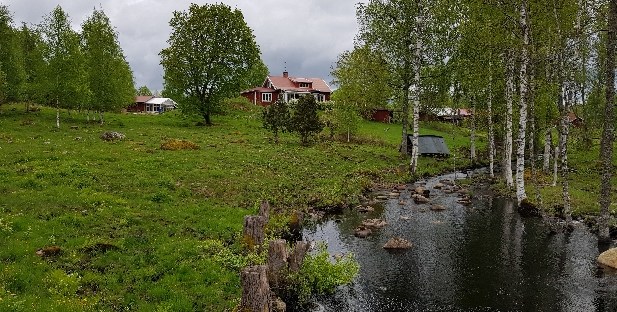 Das Haus liegt inmitten zweier Seen, nahe eines Birkenwaldes umgeben von grünen Wiesen, idyllisch wie im Bilderbuch.