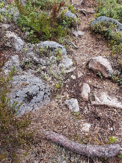 Immer wieder machte ich kurz Pause um meine Karte auf dem Smartphone zu kontaktieren, aber das Ende kam gefühlt kaum näher. Eigentlich wollte ich ja den Berglagsleden in Kloten beenden und dann noch etwa 5km weiter bis zum nächsten Unterstand wandern. Aber so langsam war klar, ich höre in Kloten auf und gehe auf den Campingplatz.