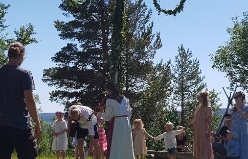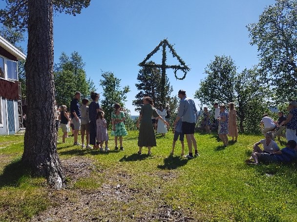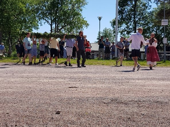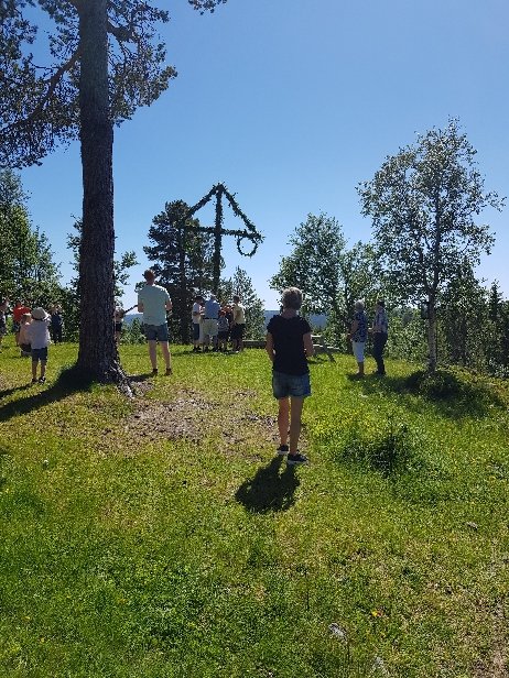 Die kleine Midsommer Feier hat gestern Nachmittag stattgefunden. Wohl hauptsächlich wegen der Familien mit den kleinen Kindern. Es waren auch erstaunlich viele Besucher da. Auf den Fotos kann man es nicht sehen und später bei den Kreistänzen hatte ich ja auch keine Möglichkeit mehr zu fotografieren. Alle die wir auf der Station übernachtet haben bekamen den Kuchen und Kaffee spendiert, die Besucher mussten zahlen. Teilweise waren die Melodien welche, die ich aus meiner Kindheit kenne. Nach 3h war alles rum. War trotzdem schön das erlebt zu haben.