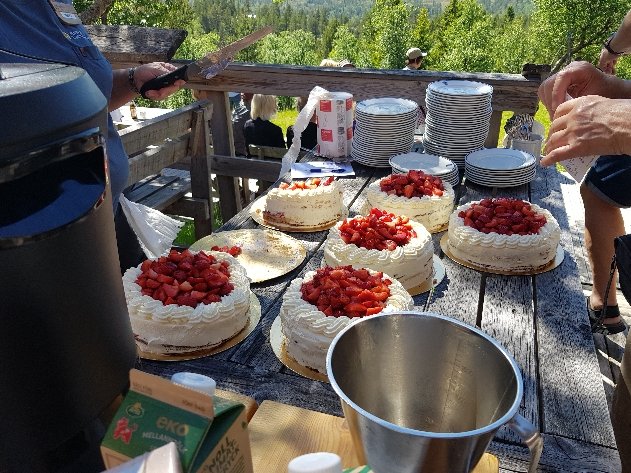 Scheinbar wird traditionell Erdbeerkuchen serviert. Er war sehr gut. Wie man sieht, an diesem Tag gaes keine einzige Wolke. Heute gibt es gerade ein paar Regentropfen aber sonst war der Himmel weißblau und warm und ich bin viel draußen im Gras gelegen und habe jede Menge Hörspiele gehört. Die totale Entspannung. Aber jetzt wird es auch wieder Zeit das ich weiter komme.