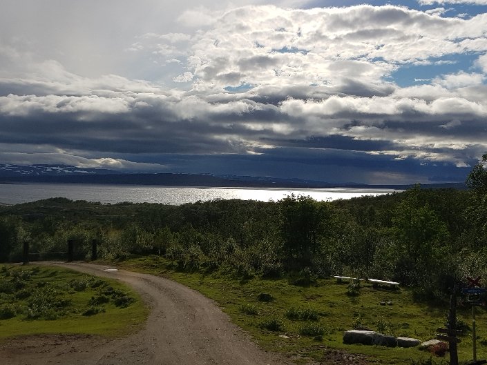 Der erste Ausblick auf den See Nesjøn. An seinen Ufern führt der Weg auch morgen noch entlang.