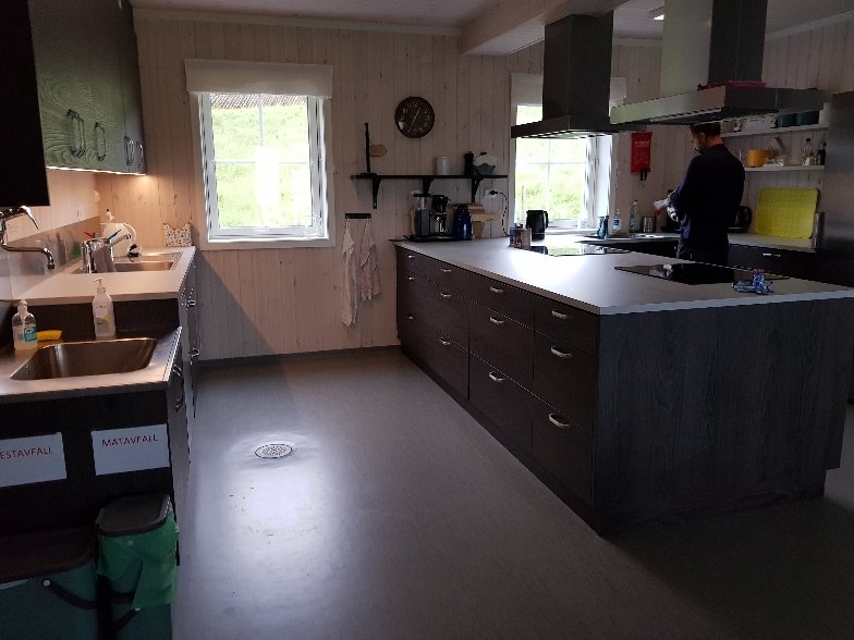Mir wurde gestern schon gesagt das die anvisierte Hütte erst ein Jahr alt ist , aber es hat mir dann doch die Sprache verschlagen. Fließendes warmes und kaltes Wasser, alles digital gesteuert, kein Lichtschalter mehr drücken, Sauna. Eine Küche mit Einrichtung und Geräten vom Feinsten. Es hätten hier 50 Leute Platz zum Übernachten. Insgesamt sind wir zu sechst. Das habe ich jetzt schon öfters gesehen, es sind ganze Familien wandernt unterwegs. Da war das gestrige Gespräch mit Caroline aus Rosenheim super interessant. Wie die Lebensart des Frisluftsliv schon im Kindergarten praktiziert und gelebt wird. Die sind dort den ganzen Tag draußen und es gibt extra Kindergärten die dann noch jede Menge Touren und Ausflüge unternehmen. Juli ist Ferienzeit und das Land steht praktisch still weil so gut wie niemand arbeitet. Ämter, Schulen, Unis, die meisten Ärzte haben geschlossen. Es war sogar die Rede davon, wenn Pakete aus dem Ausland nicht noch im Juni durch den Zoll kamen, dann hat man sie erst im August erhalten. Viele Norweger fliegen in den Süden und die Lehrer hätten zu tun den Kindern klar zu machen das Süden kein Land sondern nur die Richtung ist.