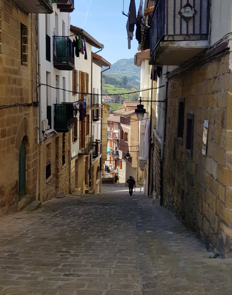 Zwischendurch trafen wir auf eine Gruppe von jungen Leuten die einen Bauernhof betreiben und am Straßenrand Kaffee und Brownies inclusive Sitzplatz gegen eine kleine Spende anboten. Da konnten wir nicht einfach vorbei gehen. Nebenbei konnten wir etliche Wanderer beobachten, die wir schon das ein oder andere Mal gesehen hatten. So vielen Leuten zu begegnen ist für mich grad gewöhnungsbedürftig. Da in Spanien scheinbar in der Karwoche, die hier Semana santa heißt, viele Leute Urlaub haben sind auch dementsprechend viele Einheimische auf Tagestouren unterwegs und die Unterkunftssuche gestaltet sich schwieriger. Ab Sonntag sollte es aber wieder ruhiger werden.