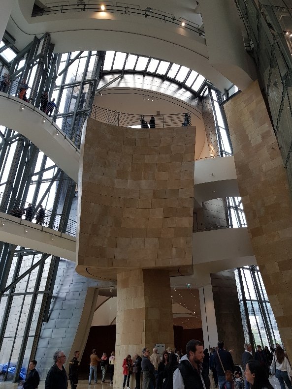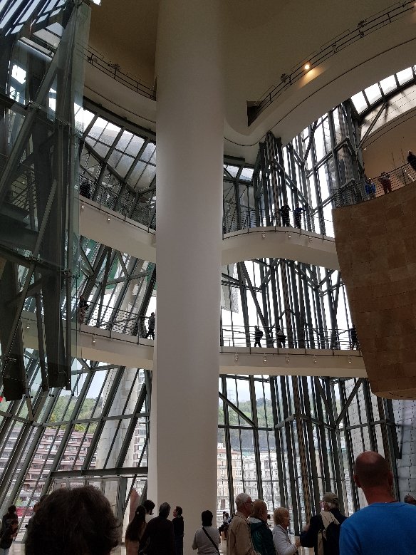 Wir stellten dann mal wieder fest, andere Länder lassen sich den öffentlichen Nahverkehr etwas kosten. Die Busfahrt dauerte 1h und führte teilweise über die Autobahn. Zu zweit zahlten wir 5,10 €. Wir sind dann gleich mal ins Guggenheim Museum gegangen. Ein unheimlich beeindruckendes Gebäude. Eröffnet 1997 nach nur vier Jahren Bauzeit. Die gegenwärtigen Ausstellungen waren auch sehenswert. Eine kleine Auswahl Bilder gibts nur von diesem unglaublichen Bauwerk.