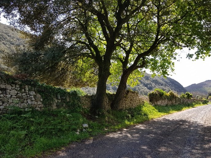 Ein schöner Wandertag bei gutem Wetter. Am Anfang führte der Weg noch entlag einer überörtlichen Straße. Da auch die Autobahn recht nah vorbei führt ist hier fast nichts los. Allerdings sahen wir etliche Polizeimotorräder, wobei wir dachten das sie das Tempolimit kontrollieren. Es waren viele Rennradfahrer unterwegs. Kurze Zeit später wussten wir genau warum. Es passierte uns ein mindestens 1km langer Konvoi aus RennradfahrerInnen. Vielfach wurde uns ein buen Camino gewünscht. Das macht tatsächlich gute Laune.