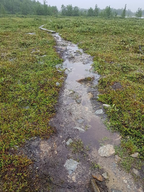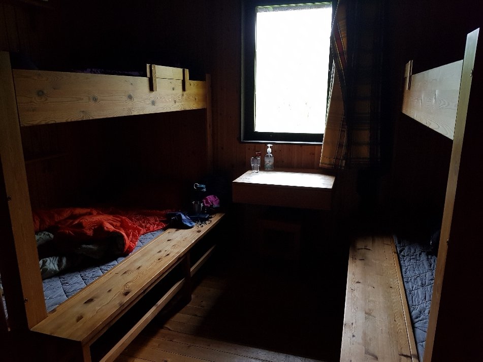 Eigentlich wollte ich heute bis in die Nähe der übernächsten Hütte in 23km Entfernung gehen, aber die nachfolgenden Bilder zeigen euch die Wegeverhältnisse – Erinnerungen an Norwegen wurden übermächtig. Im strömenden Regen bin ich bloß 9km bis zur nächsten Hütte gegangen. Da war erst mal Hoffen auf ein Bett angesagt. Das stellt sich erst abends raus, denn die Internetverbindung der Hütte ist zusammengebrochen ist und es wird erst bis 19 Uhr gewartet um festzustellen wieviele Plätze vorgebucht wurden. Zur Not muss ich auf dem Küchenboden schlafen. Kurz nach mir kamen 3 Amerikaner denen es auch nicht anders ergeht. Bei diesem Wetter denken sich viele dasselbe und wollen ein festes Dach über dem Kopf, aber wenigstens sitze ich im Trockenen und heute Abend erwartet mich noch eine Sauna, also echter Luxus.