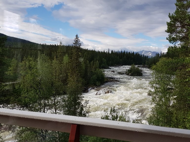 Am See angekommen hatten wir noch 2h Wartezeit bis zur Überfahrt zu überbrücken. Wir haben alle das gleiche Ziel, nämlich in der Fjällstation zu übernachten und endlich mal duschen. Die Überfahrt fand dann mal wieder bei etwas Regen statt. In Kvikkjokk an der Fjällstation mussten wir leider erfahren, dass sie ausgebucht sind und wir auf einer Warteliste aufgenommen werden. Ein 4 Bett Zimmer wird bis 18.15 Uhr vorgehalten für Leute die mit dem Bus kommen und evtl reserviert haben, was sie in ihrem System nicht sehen können. In dieser Saison wurde das Zimmer noch nie in Anspruch genommen, also hoffen wir mal. Ansonsten dürfen wir hier kochen und haben uns alle ein paar Köstlichkeiten im angegliederten Shop genehmigt die Abwechslung vom täglichen Speiseplan bieten. Jetzt verbringen wir die Wartezeit im Aufenthaltsraum.