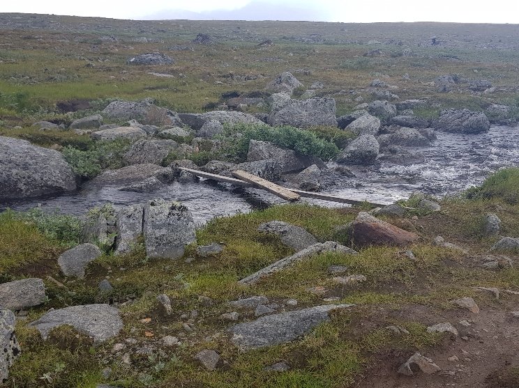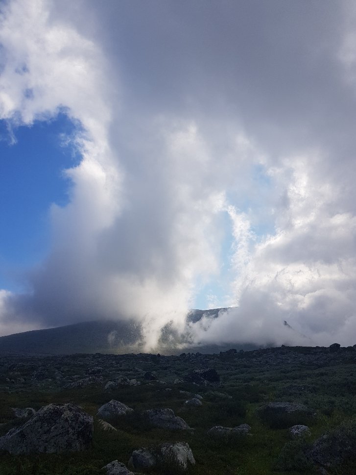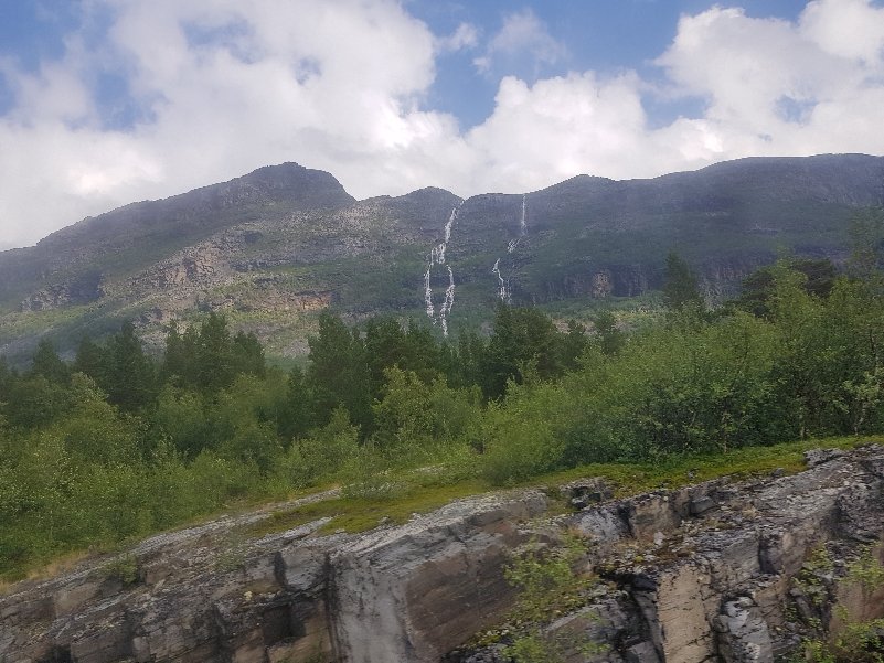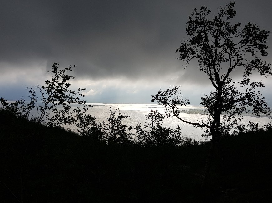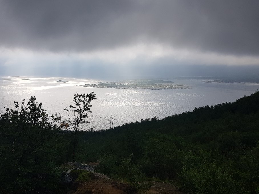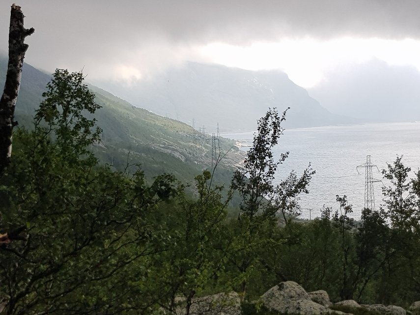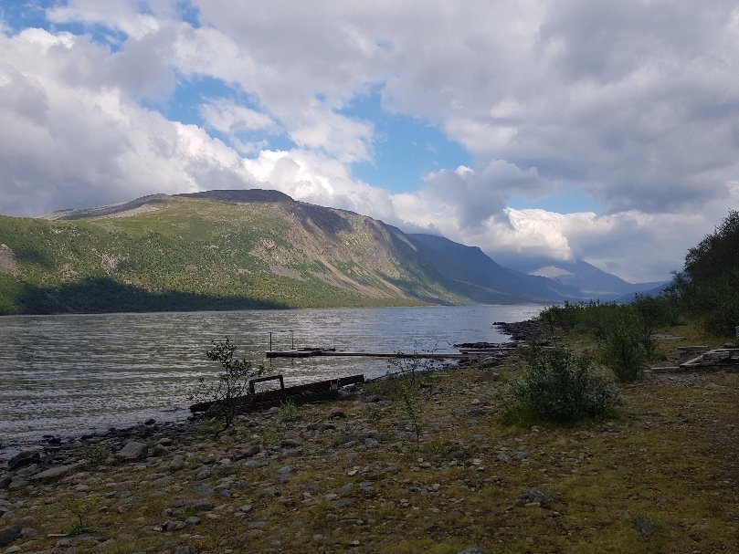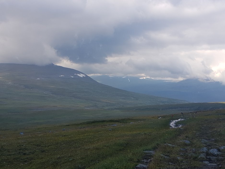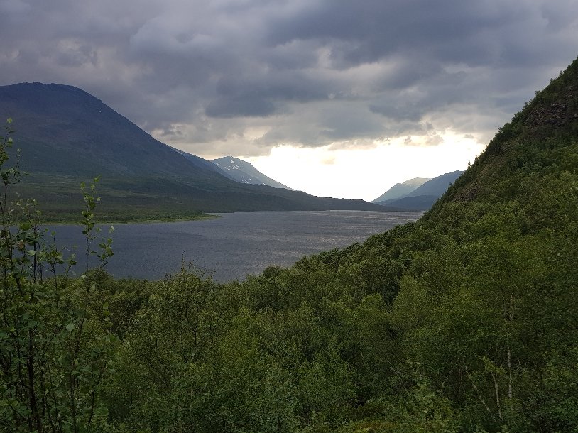 Erst mal fing er gemütlich und entspannt mit einem ausgiebigen Frühstück zusammen mit Palle und Patrick an. Die zei machen das schwedische Grüne Band und müssen noch bis zum 3Länder Eck. Danach stand wieder mal eine Bootsüberfahrt mit anschließender Busfahrt bis nach Vakkotavare an. Es war von den gestrigen Regen so feucht, das nichts zu sehen war. Beim Umstieg in den Bus habe ich dann meinen Geldbeutel verloren. Die Kreditkarte in der Hand zum Bezahlen im Bus und der Rest nicht auffindbar. Hektische Suche zusammen mit dem Busfahrer und nach nochmaligem Überlegen nochmal im Bus gesucht und dann unterm Sitz gefunden. Scheinbar ist er mir während des Hinsetzens rausgefallen. Tränen der Erleichterung bei mir und dann sind wir auch losgefahren.