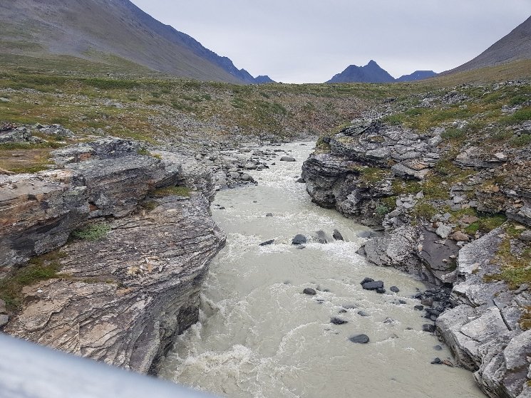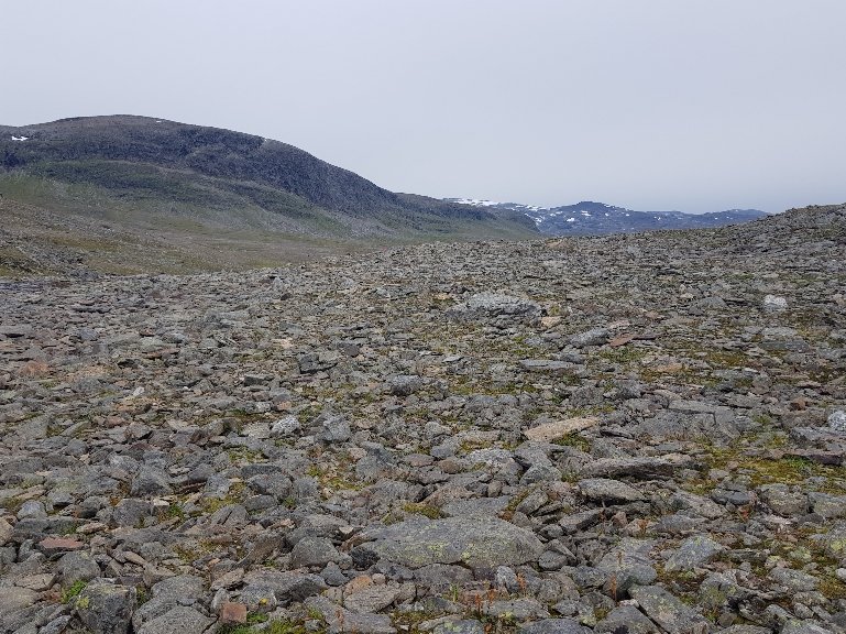 Fast 3km lang dieser Untergrund, ab und zu haben sie Holzbohlen spendiert. Irgendwie macht das Balancieren auch Spaß, aber meine Fußsohlen jammern abends ein bisschen. In diesem Fall bin ich richtig froh festes Schuhwerk anzuhaben, ich fühle mich darin deutlich sicherer. Normalerweise benutze ich meine Stöcke immer, aber hier lief es besser ohne. Seit dem späten Vormittag tröpfelt es vor sich hin, aber nicht dramatisch und abends ist es wieder vorbei.