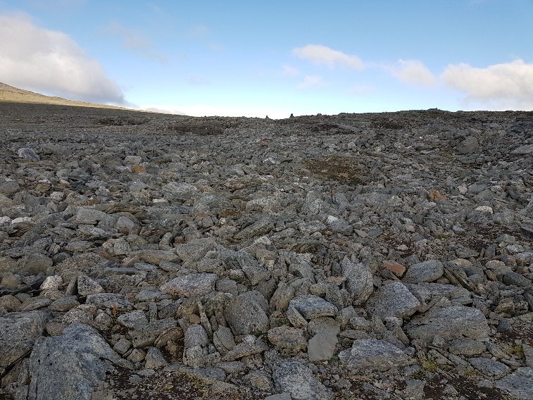 Über dem riesigen Stausee hängen trübe Wolken. Je weiter hoch ich komme um so mehr setzt sich die Sonne durch. Ein gemütlicher Weg führt bergan. Erst nach 5km wirds ungemütlicher. Ein ebenso langer Abschnitt über Blockfelder führt über die Bergkuppe. Ein kalter Wind pfeift mir um die Ohren und ich bin froh als die Turnerei über die Steine geschafft ist. Traumhafte Aussichten begleiten den sonnigen Tag.