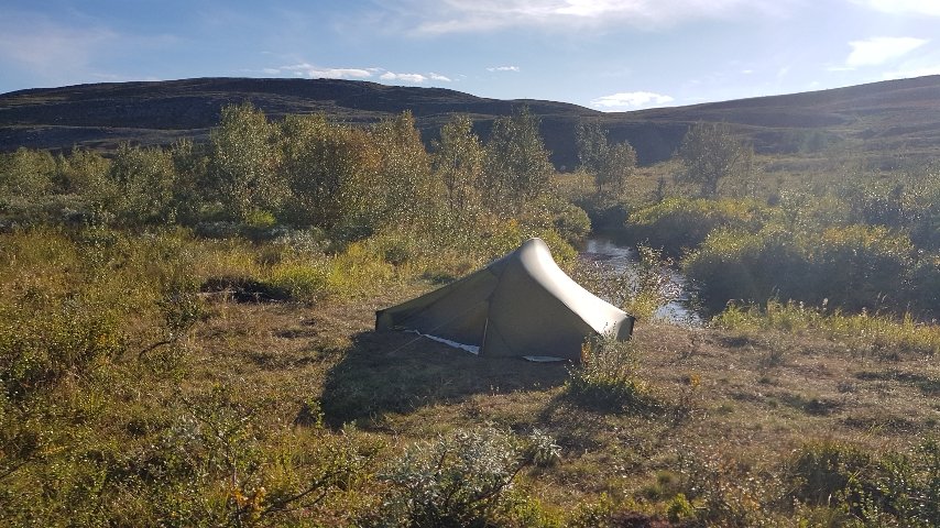 Abends finde ich an einem kleinen Fluss, eigentlich mitten im Feuchtgebiet, eine trockenes Plätzchen für das Zelt und nehme ein Bad im eiskalten Nass. Langsam werde ich immer besser im Karten lesen, denn diese Stelle hatte ich im Vorfeld als möglichen Übernachtungsplatz in Erwägung gezogen. Bin dann doch überrascht wenn es so kommt.