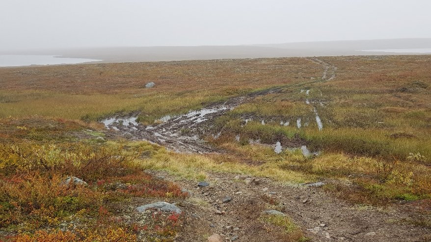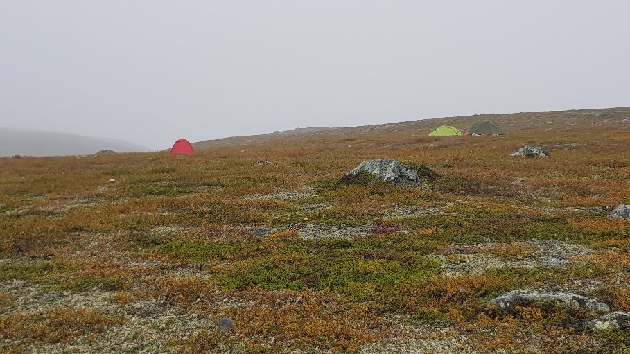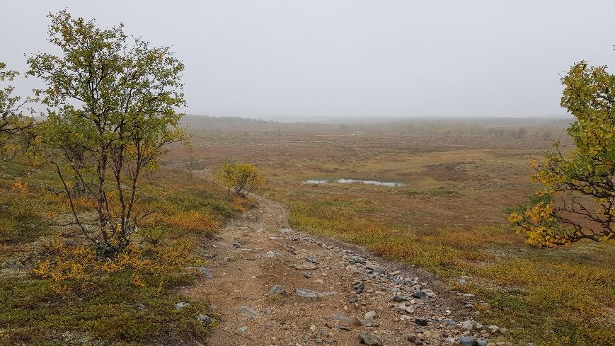 Beim Blick auf die Karte gestern Abend, war klar heute wird es nass und sumpfig. Lauter Moore und Sümpfe waren zu durchqueren und etliche Flüsse. Die bisher nasseste Etappe der Tour. Leider war das Wetter recht passend. In der Früh leichter Regen und dann bis mittag nasser Dunst. Die Schuhe waren ab Mittag durchnässt. Ichcwar darauf eingestellt, dann macht es einem gar nicht so viel aus. Ein paar Impressionen des Tages.