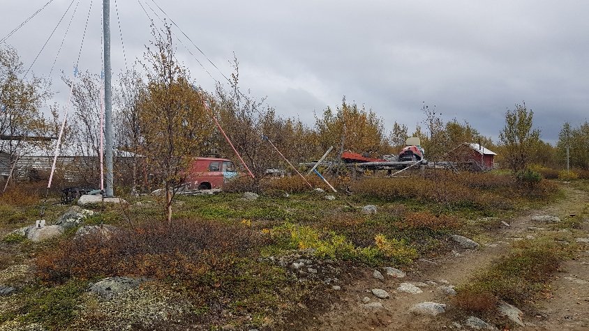 Die Häuser sind scheinbar noch bewohnt, aber der Hausrat aus Jahrzehnten liegt, zumindest bei einem außen rum.