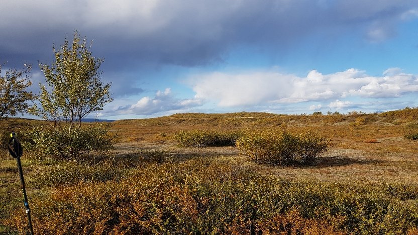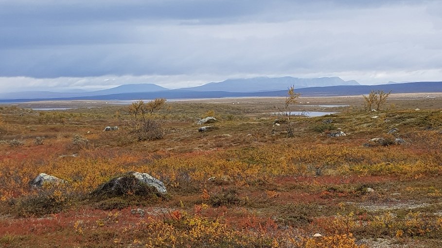 Start bei absolut ungemütlichen Wetter. Regen und der obligatorische Wind. Ich kann zwischen zwei Varianten wählen und entscheide mich für die Westliche. Da komme ich morgen an eine bewirtschaftete Hütte mit Strom, der dann bis zum Schluss reichen muss. Die Berichte werden jetzt nur noch kurz ausfallen. Diese Variante hat auch den Vorteil das mehr als die Hälfte des Weges über die Höhe führt und sumpffrei ist. In die nassen Socken, Hosen und Schuhe zu schlüpfen war wenig angenehm, wobei die Vorstellung davon schon für Unbehagen sorgt. Wenn mal alles angezogen ist, gehtces nach kurzer Zeit. Leider hat mich auf der Höhe dann ein ordentliches Unwetter erwischt mit Sturm und Graupelschauer. Der Wetterbericht hat für Nachmittag dann etwas Sonne angekündigt, ich wollte es kaum glauben.