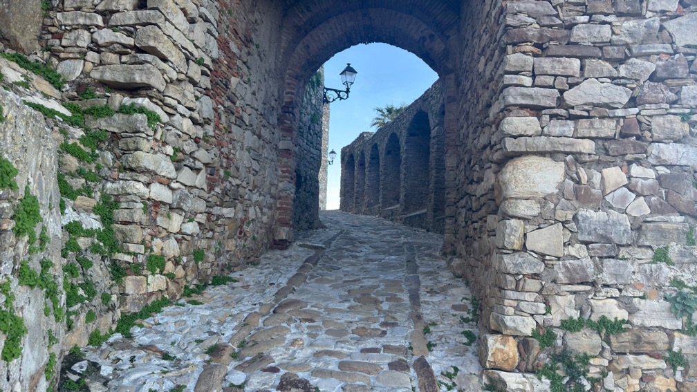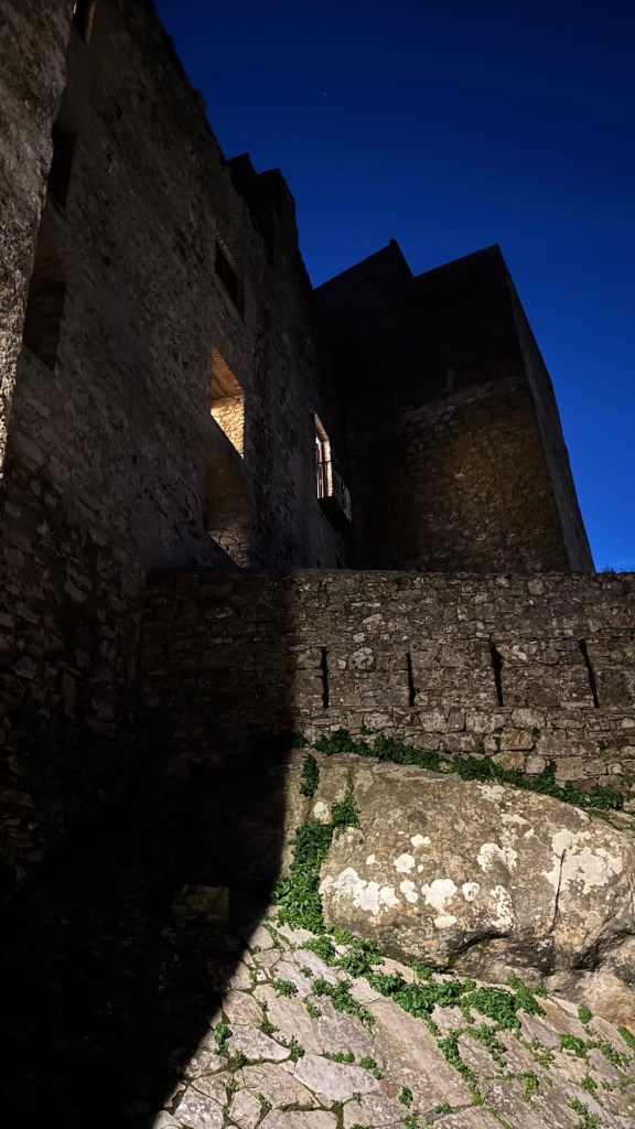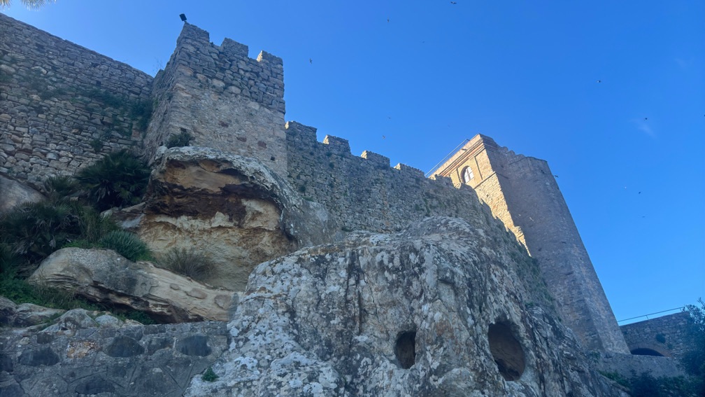So recherchierte ich mal wieder nach einer Unterkunft. Oben auf der Burg steht ein Hotel und das, der absoluten Nebensaison geschuldet zu einem wirklich günstigen Preis. So beschloss ich, entgegen meiner Planung doch noch den Berg zu erklimmen. Mit dem Wissen das am Ende eine Dusche wartet, lässt sich der steile Anstieg in der prallen Sonne, die mir dann bestimmt 30° bescherte frohgemut bewältigen. Das sind dann auch die schönsten Bilder des Tages mit einer grandiosen Aussicht.