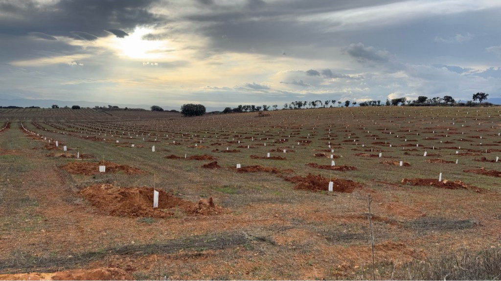 Auch interessant, wie hier jedes OlivenBäumchen in einem tiefen Loch steht.