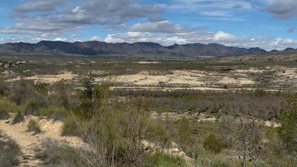 Um Fuente Ascoy sind riesige Obstbaumplantagen die den kompletten Talkessel ausfüllen. Es gab keinerlei Möglichkeiten zur Zeiten. Ich musste also weitergehen, bis Cieza. Dieser Ort wird umrahmt von Steinbergen, und es war abzusehen, dass ich in nächster Zeit keinen Platz zum Zeiten finden würde. Notgedrungen buche ich mir ein Hotel, was sich dann auch als gute Entscheidung erwies, denn ein ordentlicher Regenguss beendete meinen Tag. Auf Bilder müsst ihr heute leider verzichten. Irgendwie funktioniert meine Fotokomprimierungsapp nicht mehr richtig. Im Moment bin ich einfach zu müde, um mich weiter darum zu kümmern.