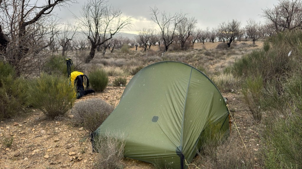 In Norwegen hätte ich damit gerechnet, das ich es jetzt in Südspanien erlebe, so recht erwartet habe ich das nicht. Premiere meine äussere Zeltplane war teilweise gefroren.