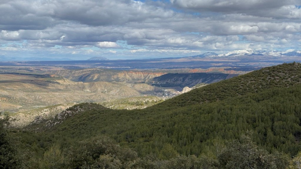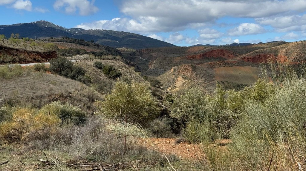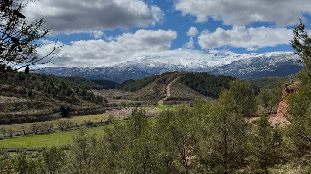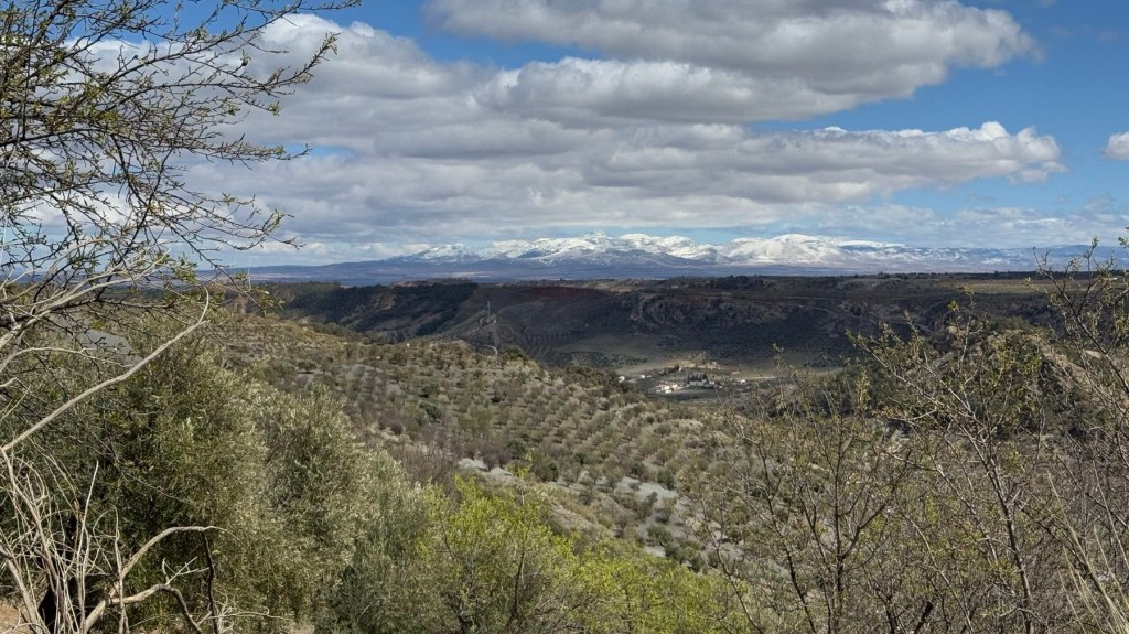 Heute den ganzen Tag Sonnenschein, ich müsste nachschauen wann das das letzte Mal vorgekommen ist. Egal ich genieße es auch wenn es nicht warm ist. Da geht mir einfach das Herz auf und schöner kann wandern nicht sein. Hier treffe ich urplötzlich auf Wegweiser des Mozarabischen Jakobsweges. Das erleichtert die Orientierung ungemein, bis jetzt wurde ich nicht verwöhnt in dieser Hinsicht. Es geht hinauf in die Berge, die schneebedeckten Gipfel der Sierra Nevada sind ganz nah.
