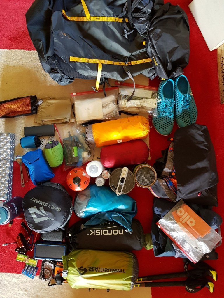 Das ist sie, die Ausrüstung für meine Nordroute des E1. Jedes Teil vielfach getestet und für gut befunden. Gesamtgewicht 10,3kg doch eine Menge Gewicht, aber der gesunde Kompromiss zwischen leicht und bequem. Meine nicht mehr ganz jungen Knochen wollen gut behandelt werden.