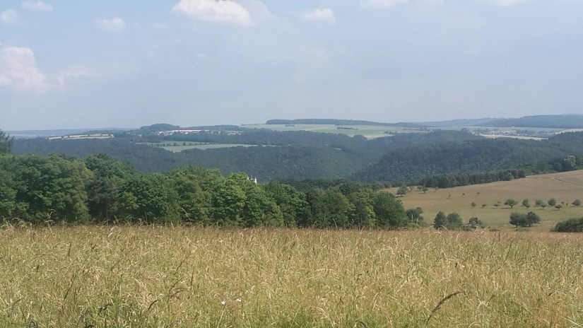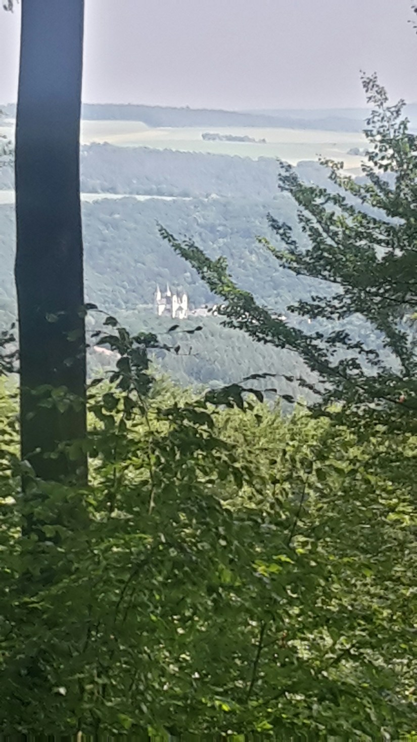 Die ersten Kilometer verbrachten wir heute morgen auf dem Lahnradweg. Er verläuft nahe, meist oberhalb der Lahn. Fast immer durch Wald, also keine Sicht auf den Fluss. Es war mächtig Betrieb und ein entspanntes Wandern fast unmöglich. Später trennten sich die Wege, da die Wanderer auf den Lahn Höhenweg geschickt werden. Das war mal ein richtiger Wanderweg. Schmale Pfade, steile und flache Passagen, Wald -und Grasboden über Wurzeln und umgestürzte Bäume, schöne Ausblicke . Anstrengend aber anregend.