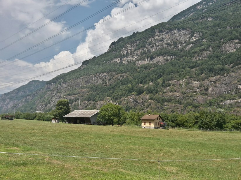 Inzwischen bin ich mit dem Bus nach Bellinzona gefahren, wo ich zwei Tage nächtige. Zu meiner Überraschung hat sich meine Arbnb Buchung als Hotel herausgestellt und ich habe es echt konfortabel abgeschieden. So langsam bin ich wieder hergestellt. Morgen geht es dann wieder zurück nach Biasca und ich wandere bis Bellinzona. Das sind laut Navigation nur neunzig Meter runter und dreißig rauf, das sollte unproblematisch werden. Außerdem habe ich mir vorgenommen nicht zu jammern, denn neben mir werden die Autobahn, die Gotthardstrasse, eine normale Straße, die Bahn und ein Fluß verlaufen. Lärm ist garantiert.