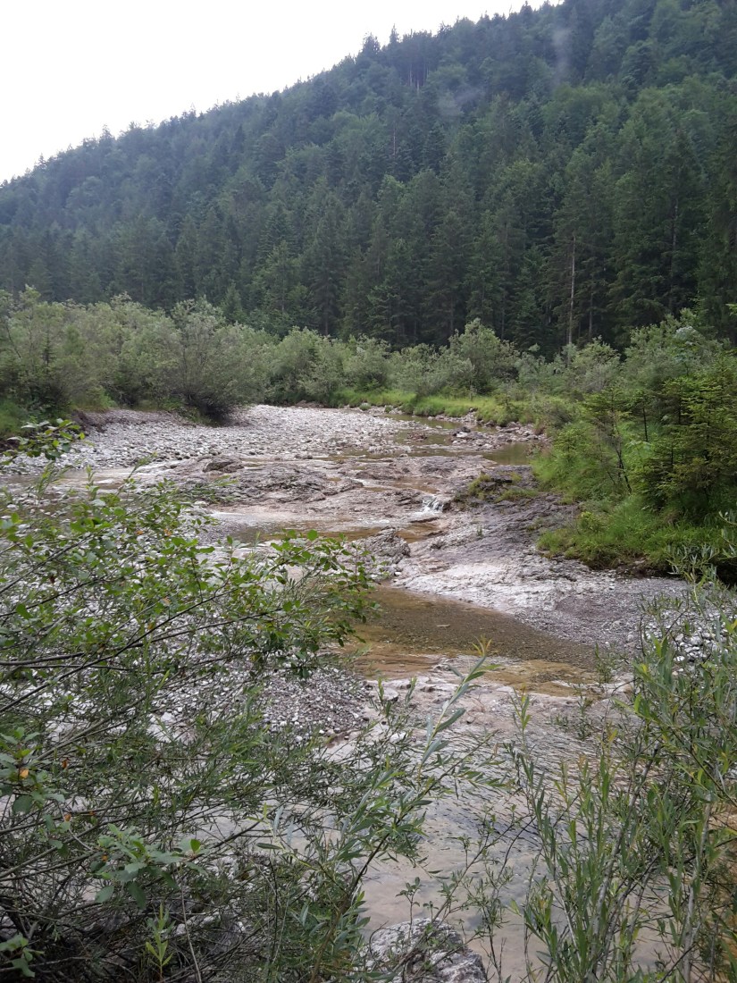 Ein ganz entspannter Tag. Nur 16km im Tal der Eschenlaine. Ein Flüsschen zumindest im Moment. In Eschenlohe ist vom Wasser gar nichts zu sehen. Scheinbar fließt es unter dem Kies durch.