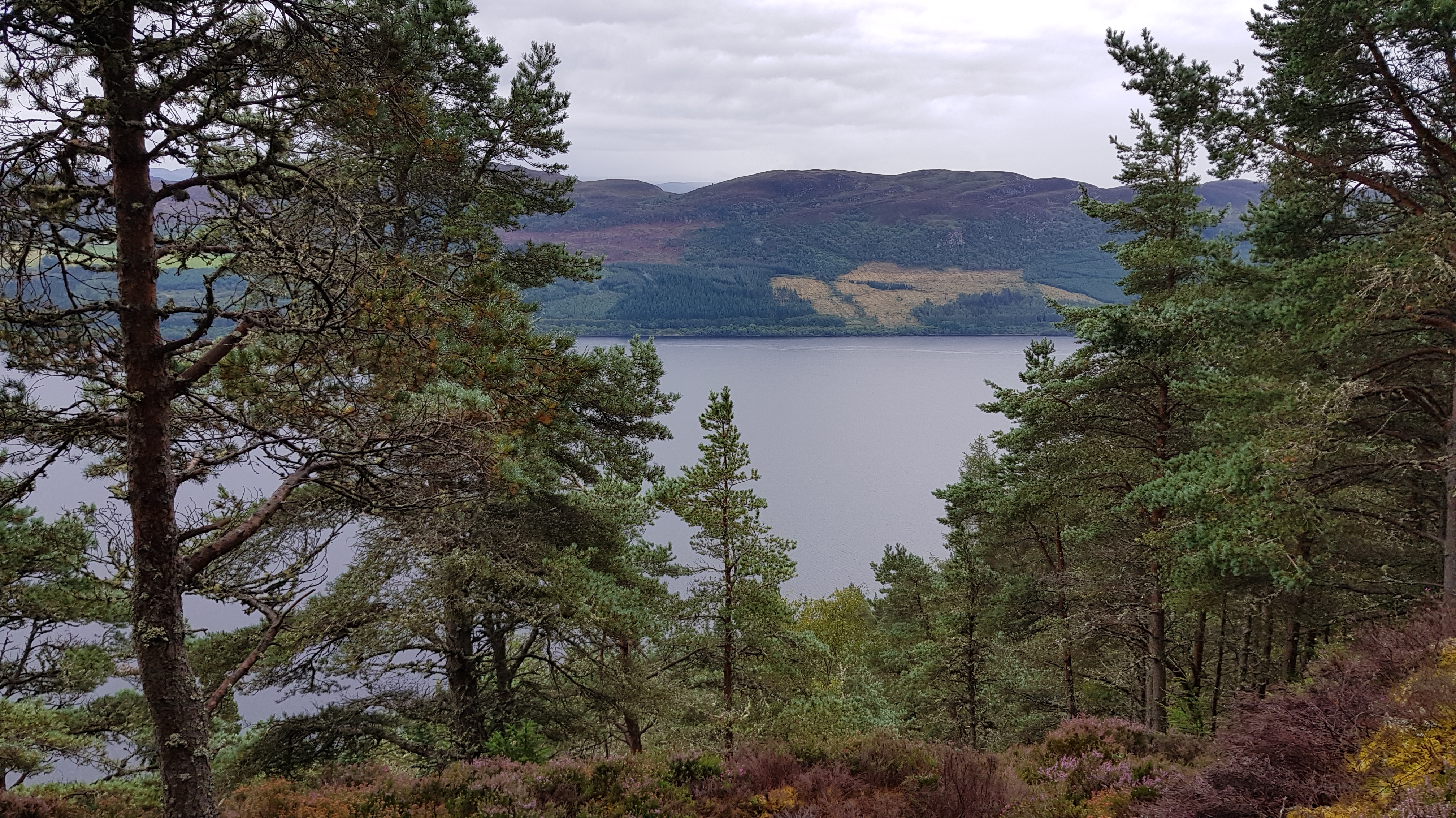 Endlich sehen wir Loch Ness, nachdem wir schon stundenlang nebenher wandern, leider bei fast ständigem Nieselregen