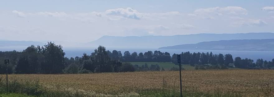 Wir hatten heute öfter die Gelegenheit auf den Mjosasee zu sehen. Die letzten Bilder sind von weiter oben, heißt gegen Ende waren wieder stramme Höhenmeter zu überwinden. Aber wir merken es geht sich immer leichter, also die Konditionen steigt. Entstandene Blasen vom Alfons sind verheilt, manchmal zwickt etwas, meistens aber nicht lang was nicht eine Pause beheben kann.