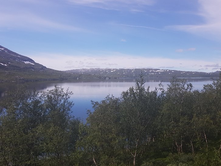 Da der Weg um den Ballvattnet See herumführte war die Aussicht auf Wasser und Berge immer gegeben