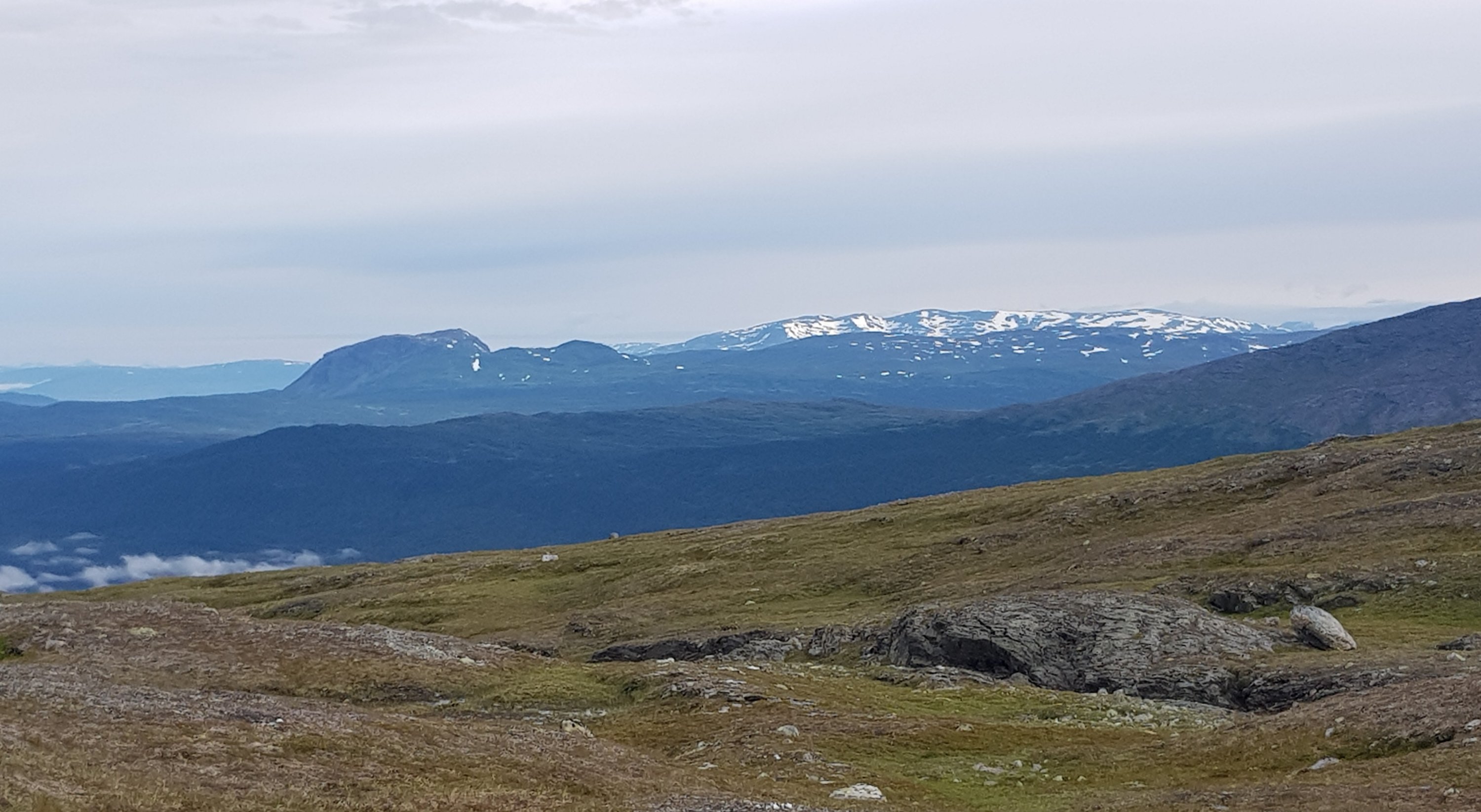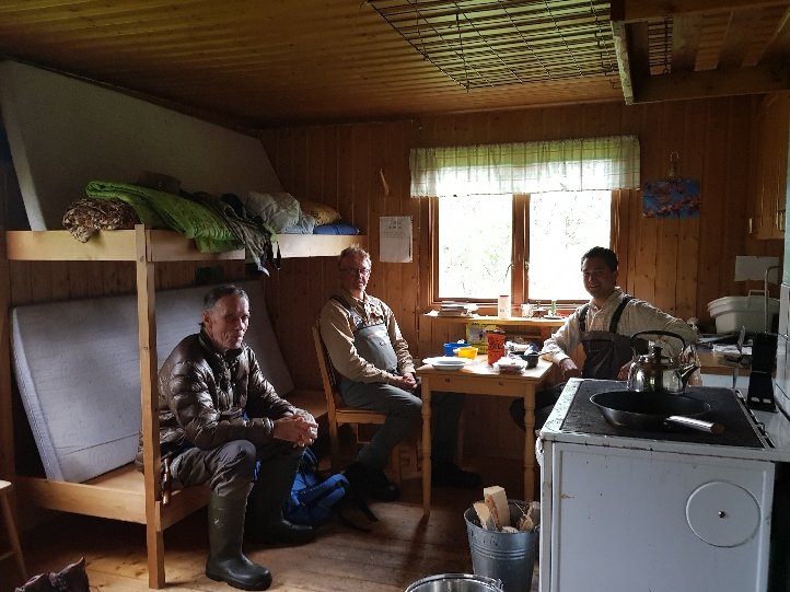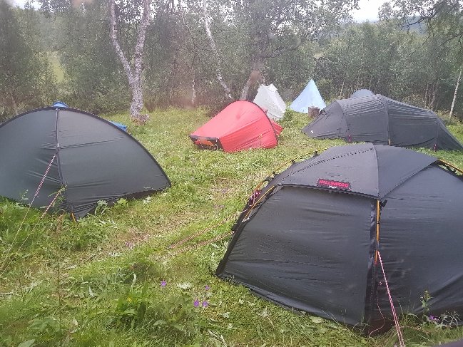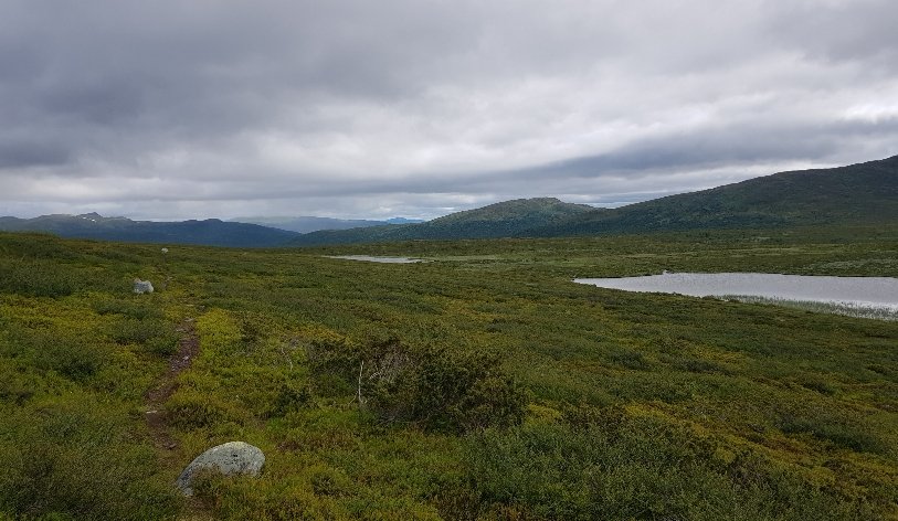Meine heutige Übernachtung ist auf einem ehemaligen Bauernhof. Da wurden mal gleich die Holzöfen eingeheizt und ich wurde zum Abendkaffee mit selbstgebackenen Kuchen und Hefesemmeln ins Haupthaus eingeladen. Zusätzlich standen Käse und Marmelade und die norwegische Butter (eigentlich eine Mischung aus Margarine und Butter) bereit. Die Dame des Hauses merkte dazu an, extra für die Wanderer die brauchen das Fett. Es sind noch zwei Wanderer mit 3 Hunden da. Die gehen jetzt das 3. Jahr von Norden her den E1. Immer 4 Wochen im Jahr. Grundsätzlich wollen sie bis Sizilien gehen. Sie meinte das sie dazu 10-15 Jahre brauchen werden. Sie hatte vor nicht allzulanger Zeit einen Schlüsselbeinbruch und kann keinen Rucksack tragen. Er trägt für sie beide das normale Equipment und die Hunde das Essen.