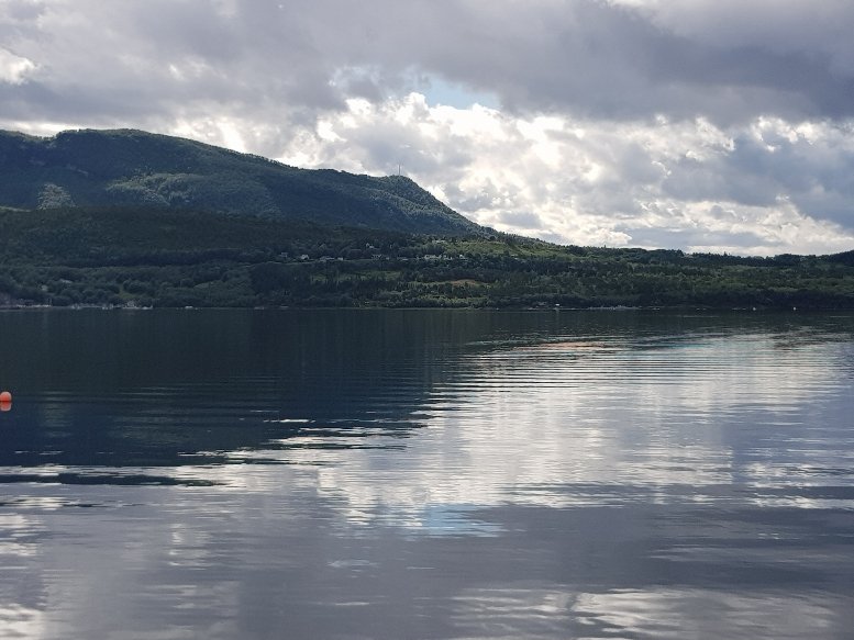 Wir wollten eigentlich schwedische Kronen holen und wurden informiert das die Bank außer im Automaten kein Geld da hat. Am Schalter kann nur Papierkram erledigt werden. Ist tatsächlich immer ein bisschen schwierig an Bargeld zu kommen. In Schweden auf dem Padjelantaleden wo ich demnächst hinkomme, gibt es Hütten wo nur mit Bargeld bezahlt werden kann und natürlich kommt kein Ort vorher wo man sich mit Bargeld versorgen kann. Für mich sind das nur zwei Plätze und da steht halt dann zelten an, was schließlich auch kein Drama ist, bloß gerade ungewohnt nachdem ich gerade von Hütte zu Hütte unterwegs bin. Fauske liegt an einem Fjord und so habe ich doch noch einen gesehen.