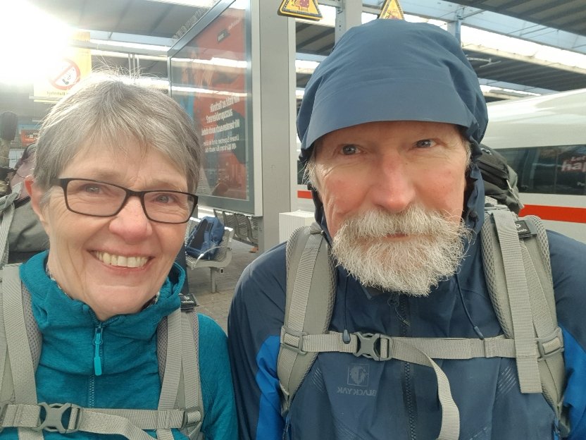Ein sonniger frühlingshafter Tag erwartete uns. Morgens noch etwas frisch, aber eigentlich bestes Wanderwetter. Als erstes gings zur spanischen Grenze und dem offiziellen Beginn des Pilgerwegs auf einem Steg über dem Bidasoa.