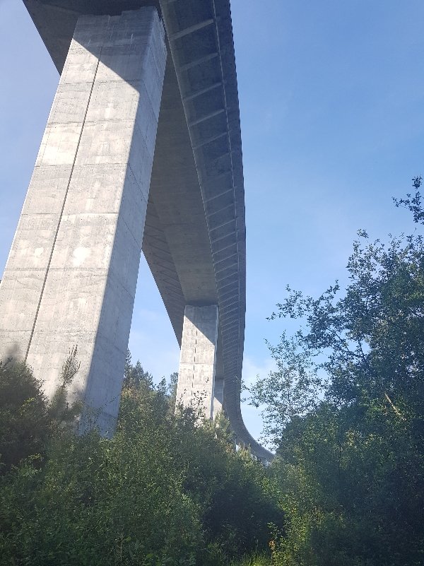 Im großen und ganzen viele Höhenmeter, aber wenig Straße. Auch die Autobahn begleitete uns wieder. Heute querten wir sie öfter. Da die Landschaft gerade sehr bergig ist, sind für die Straße schier unglaubliche Brückenbauwerke nötig.