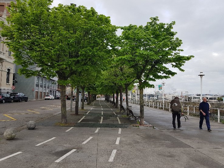 die Allee für die Radfahrer, daneben die Hafenpromenade