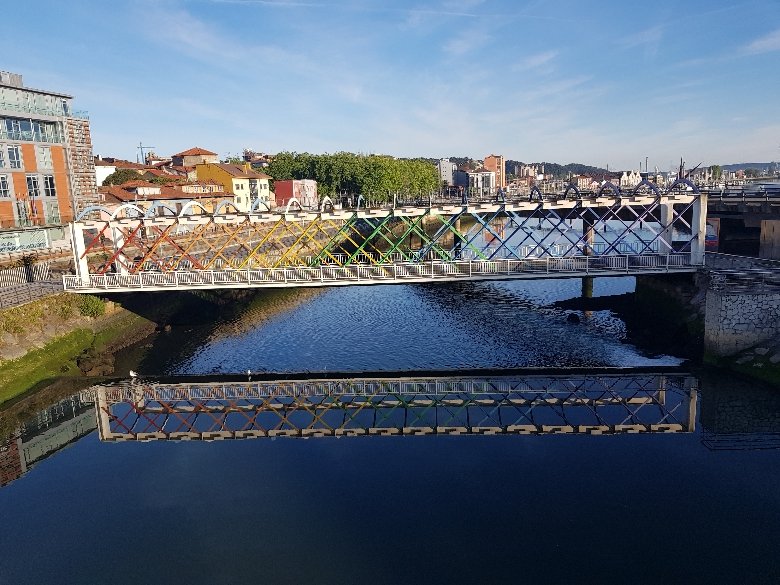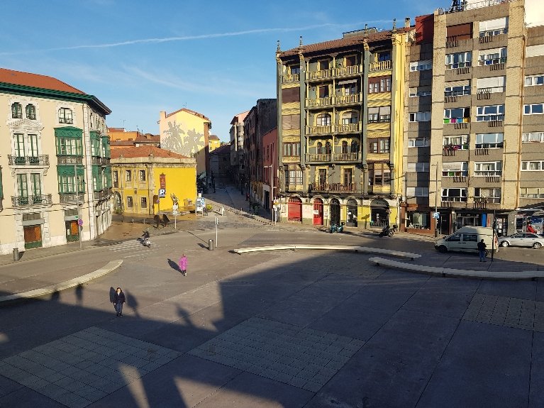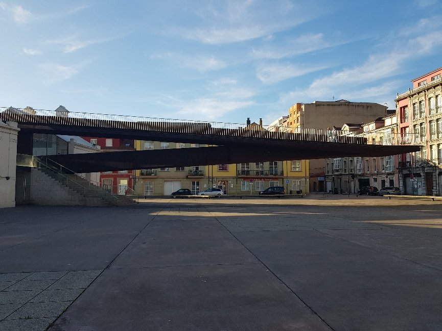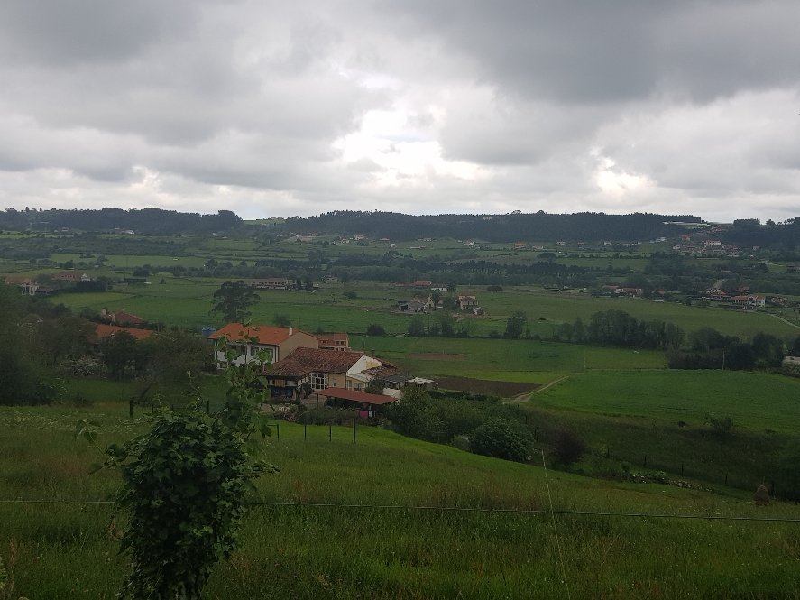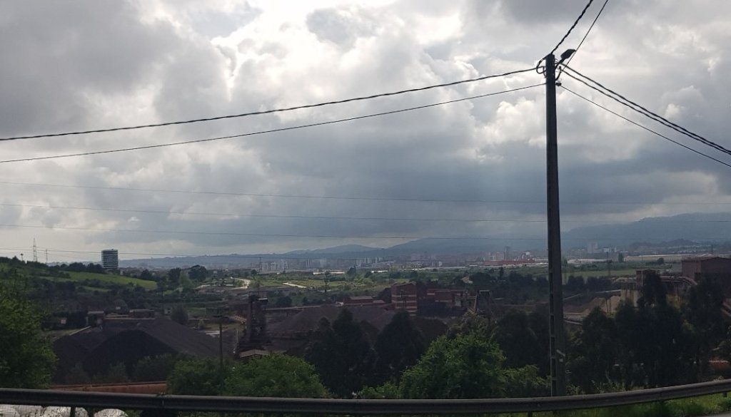 Heute kann man die Strecke in drei Abschnitte teilen. Stadt, Land und Industriegebiet. Nachdem Gijon mit über 270 000 Einwohnern eine große Stadt ist, war klar es braucht ein paar Kilometer bis wir draußen vor den Toren der Stadt sind. Was uns aufgefallen ist, es hängt keine Wäsche vor den Fenstern. Überall haben wir verschiedenste Wäscheleinenkonstrukte die vor den Fenstern befestigt sind, gesehen. Später erfuhren wir, das ist in Gijon zur Straßenseite hin verboten und nur in Hinterhöfen erlaubt. Es ergibt, zumindest für deutsche Sehgewohnheiten, gleich ein ordentlicheres Bild.