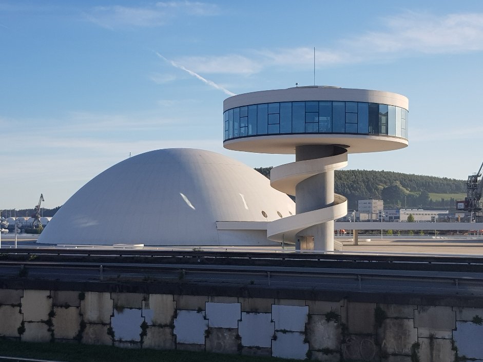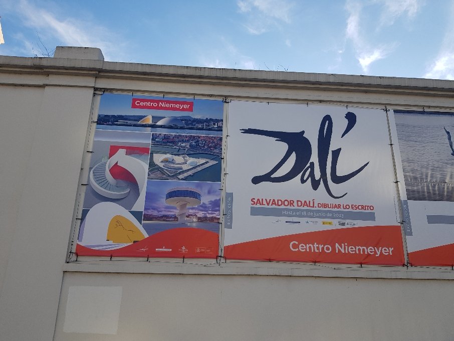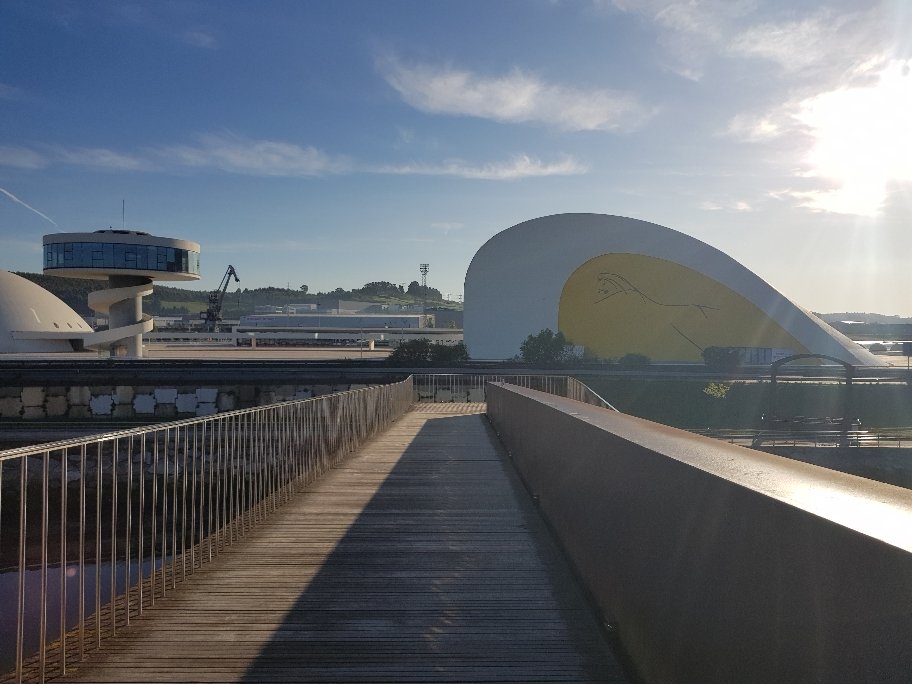 Innenstadt von AvilesKulturzentrum geplant vom Stararchitekten NiemeyerDas Plakat zeigt die Anlage von oben Der Platz vom Aufganaus betrachtetdiesen Aufgang gab es von zwei Seiten ausDer Blick auf Soto del Barco