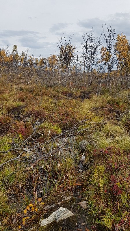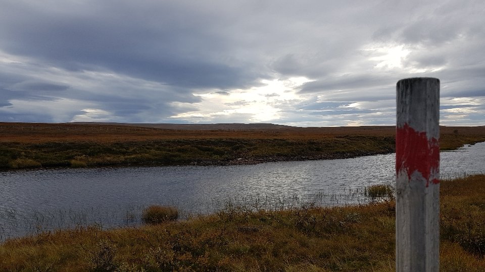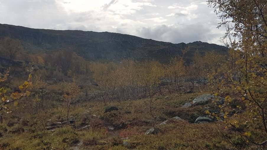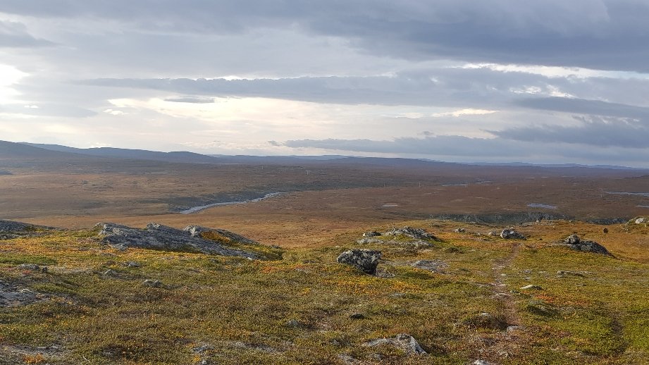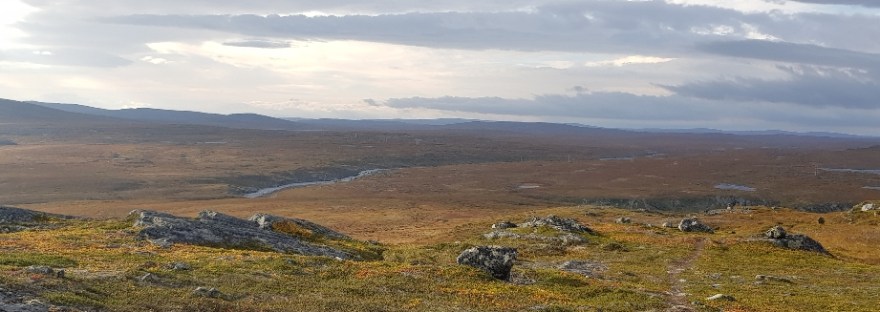 Grundsätzlich stellen die Wege in der Finnmark keine technischen Schwierigkeit bereit. Aber da der Boden wrich oder nass und weich ist, ist er auf Dauer kräftezehrend. Heute noch mit starkem Wind, sodas es großer Anstrengungen bedarf um überhaupt gerade stehen zu können. Ihr merkt, es ging an meine Substanz.