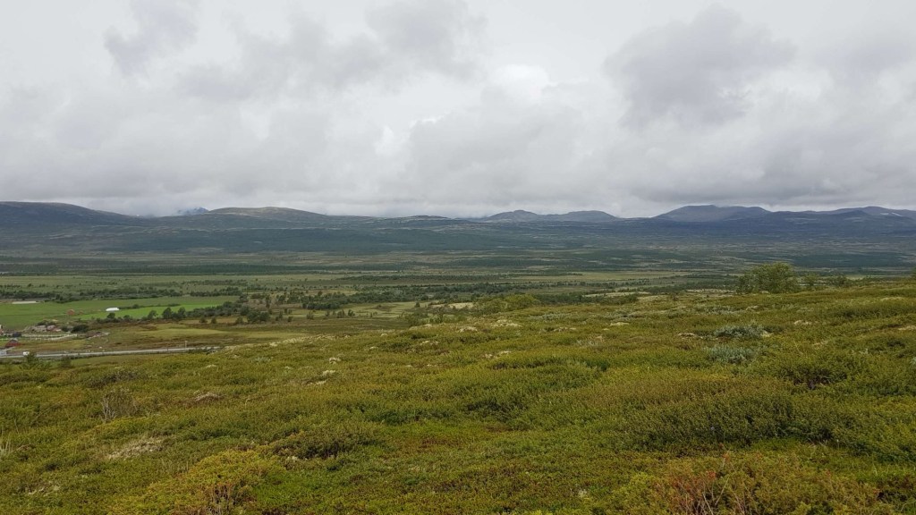 Heute beginnt der Aufstieg ins Dovrefjell bis auf 1200 Meter, natürlich pfeift da oben auch ordentlich der Wind und mit 6°C ist es auch nicht besonders warm. Das Wasser kommt mir Sturzbachartig auf dem Weg entgegen, sodass ich nach einiger Zeit komplett durchnässt bin. Dummerweise habe ich die Handschuhe im Packsack ganz unten im Rucksack verstaut unf meine Finger sind so kalt und starr, das ich die Schnallen vom Rucksack nicht öffnen kann.