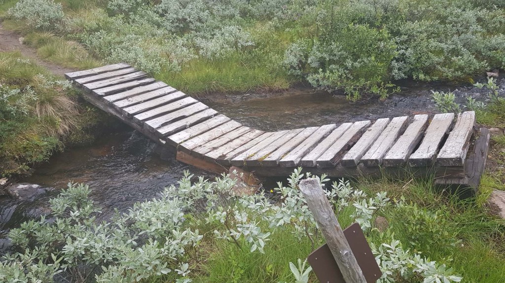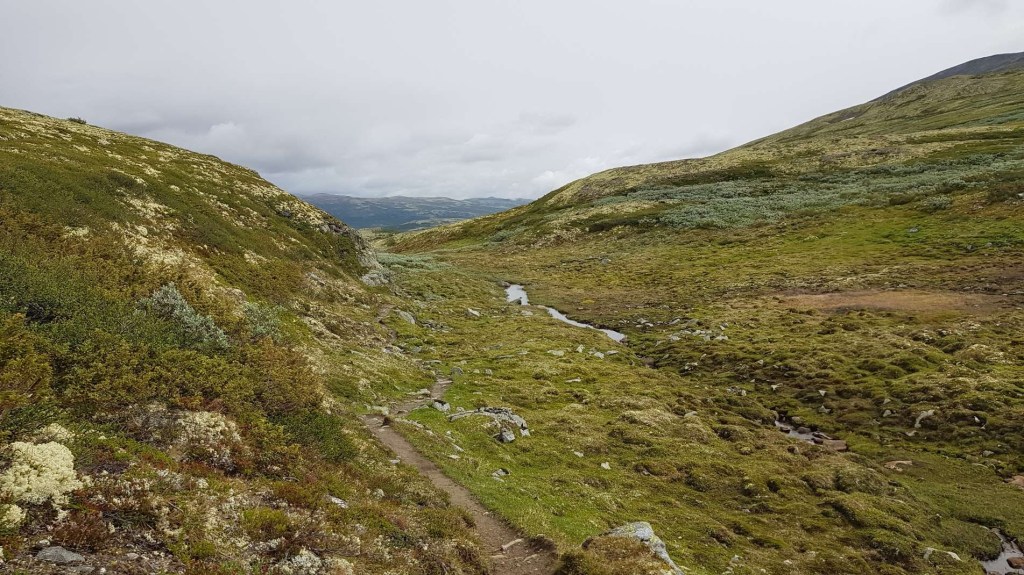 Ein regelrechtes Dejavu erlebe ich auf dem Fjell. Sumpf, Bäche die aufgrund des tagelangen Regens so viel Wasser führen, das die Brücken alle zu kurz sind oder sie nicht mit einem großen Schritt überqueren kann. Alles steht unter Wasser, hatte ich schon wieder komplett vergessen.