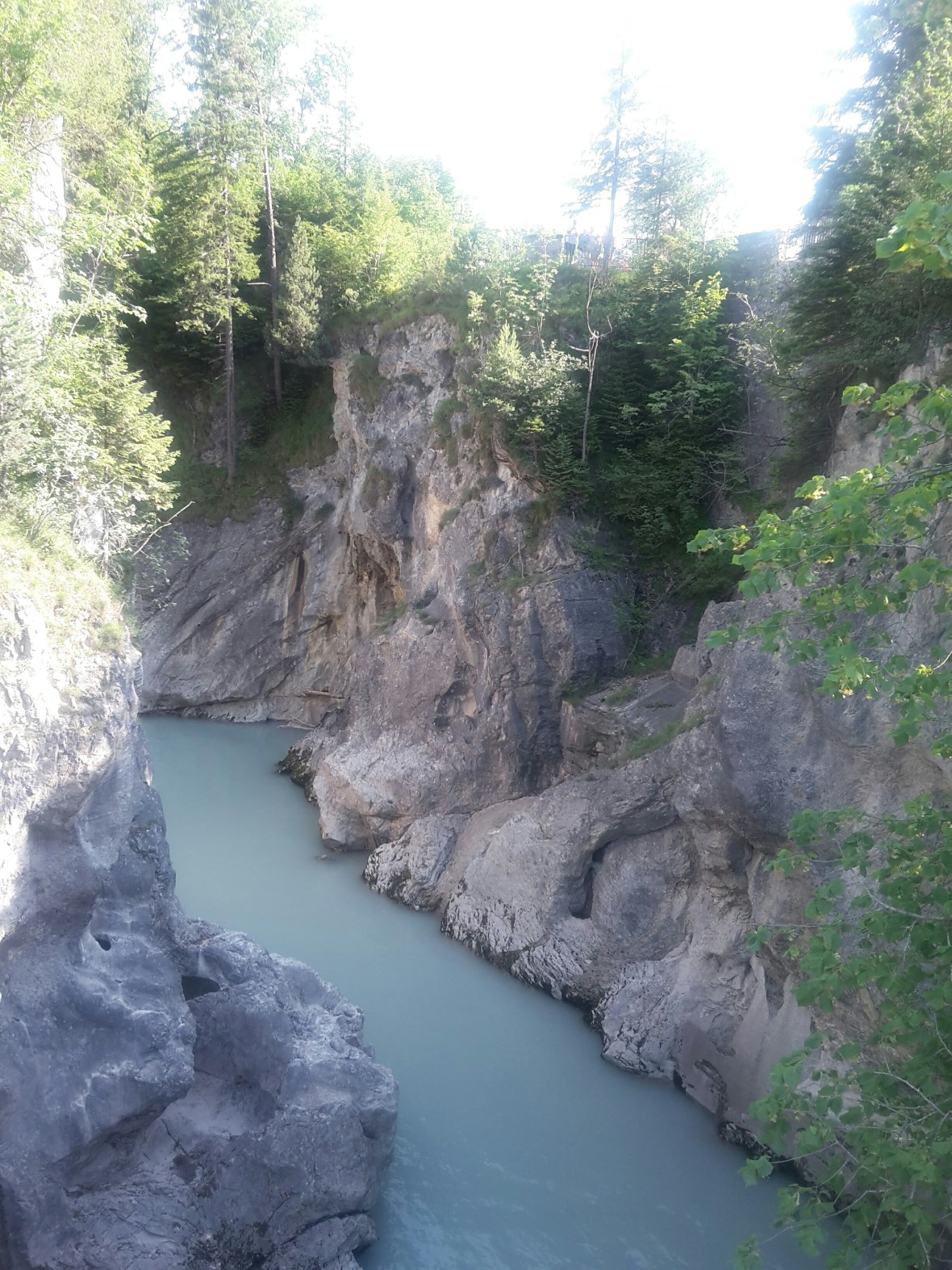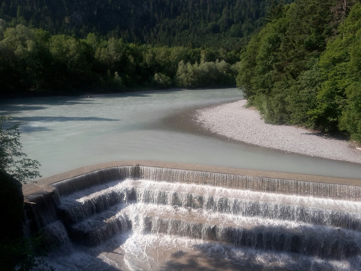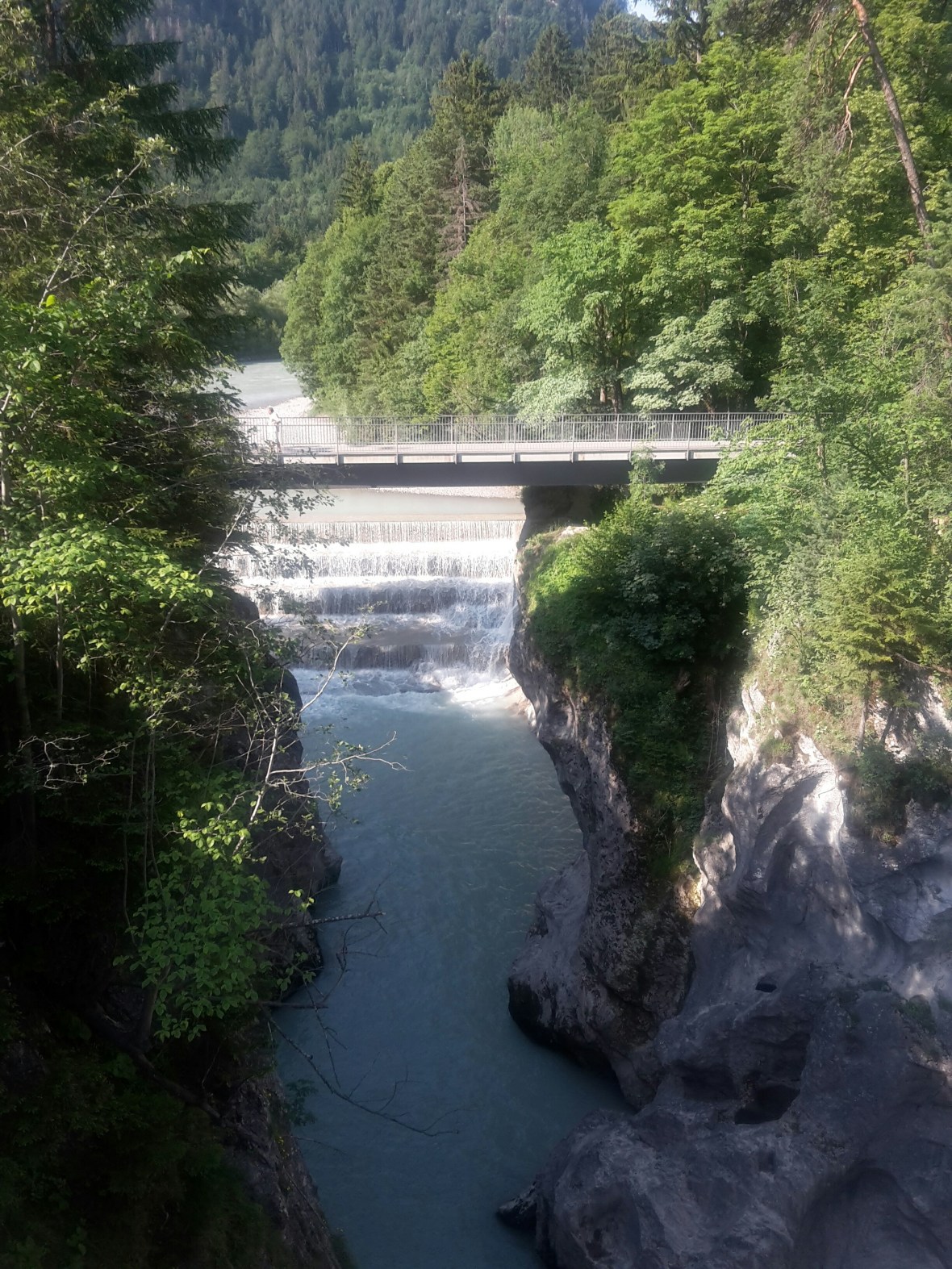 Ein Tag mit Überraschung.In der Früh nach einem ausgiebigen Frühstück unter lauter Italienern wanderte ich gutgelaunt los. Im Hotel hatte eine etwa 30 Mann starke Motorradfahrergruppe aus Italien übernachtet. Dementsprechend war der Geräuschpegel beim Frühstück. Ein fröhliches Palaver an allenTischen. Die gute Laune steckte jeden anIch musste eigentlich nur nach Hohenschwangau und den Tegelberg hinauf. Es war mir schon klar das in der Nähe von Schloß Neuschwanstein einiges los sein würde, aber ich war dann doch überrascht. Erst mal kam ich am Lechfall vorbei.